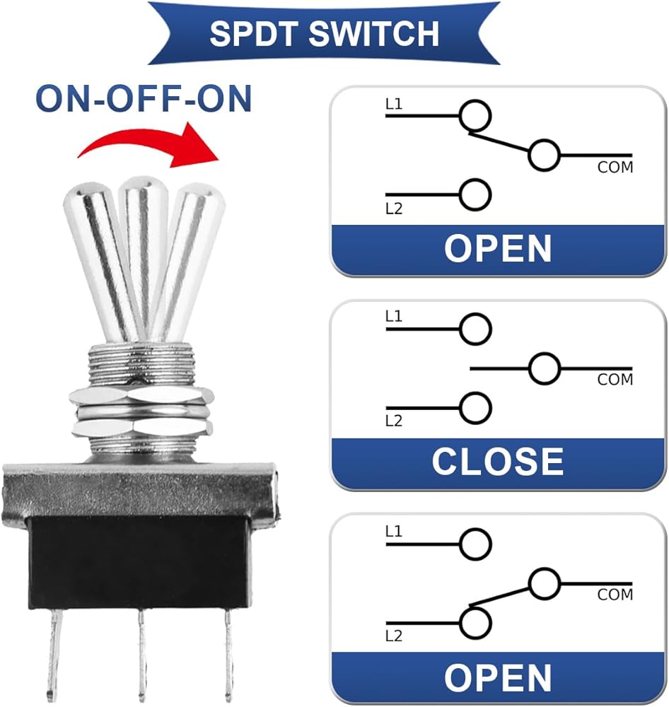Effortless Operation: ON/OFF 2-position design, these SPST (Single Pole Single Throw) switches offer easy and intuitive operation, making them ideal for controlling lights, fans, motors, and more with a flick of a switch.