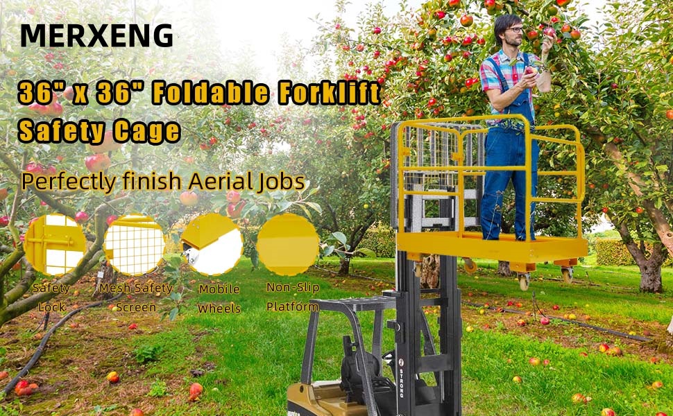 【سعة التحميل 1200 رطل】 Merxeng Forklift Safety Cage يقيس 36 "L × 36" W وقدرة الوزن 12000 رطل ، مما يجعله الحجم والقوة المثاليين لك للوقوف والتحرك فيه.