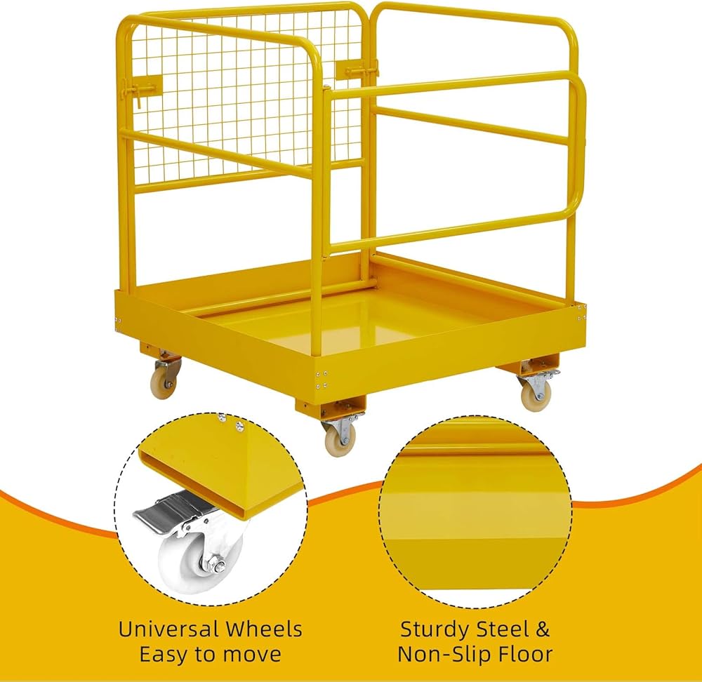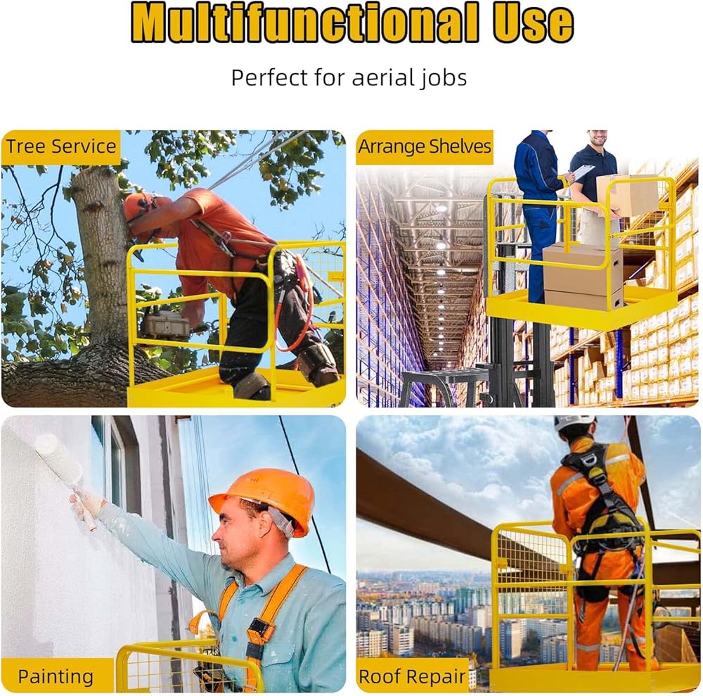 【الحماية الشاملة】 تبقي نفسك وموظفيك آمنين مع هذه السلة الفولاذية الشاقة. يتم تعزيزه مع الدرابزين وأرضية غير انزلاق للمساعدة في منع السقوط والإصابات. كما أن لديها شاشة أمان شبكية تساعد على إبقائك في الداخل. بالإضافة إلى ذلك ، فإن شوكة الاحتفاظ بدبابيس لقفل الوحدة على الشوك ، والمزيد من السلامة وتساعدك على الدخول والخروج أسهل.