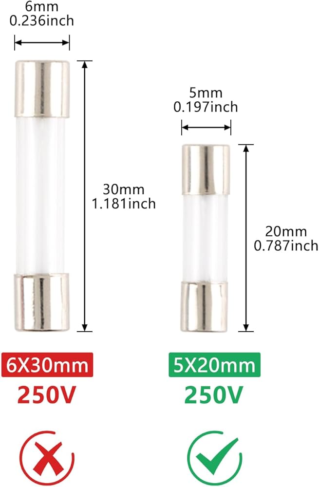 • Comprehensive 150-piece set of 5x20mm glass fuses with 10 different values ranging from 0.5A to 10A, ensuring you have the right fuse for any situation
