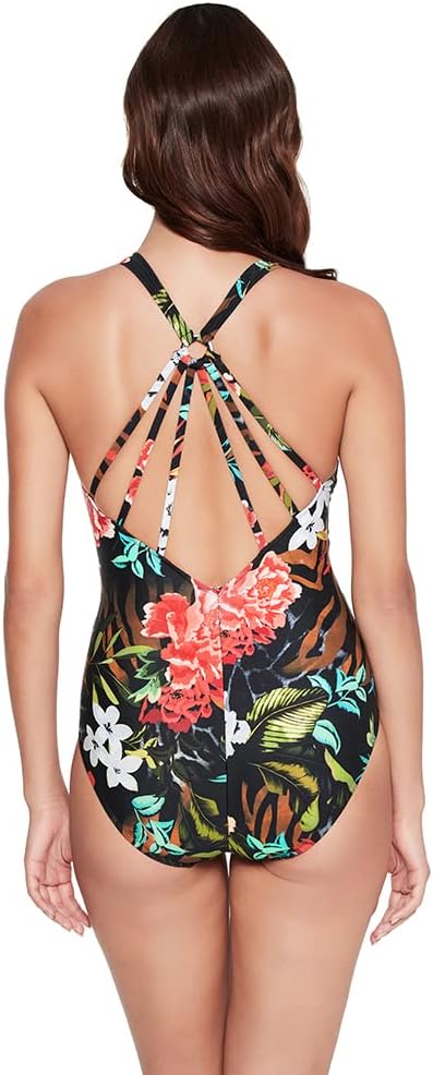 • Provides allover slimming & shaping • Removable soft cup for added support • Flattering twist front design creates hourglass effect • Strappy back detail for dramatic effect