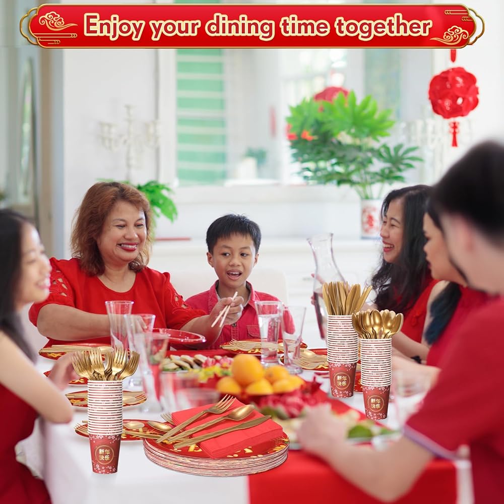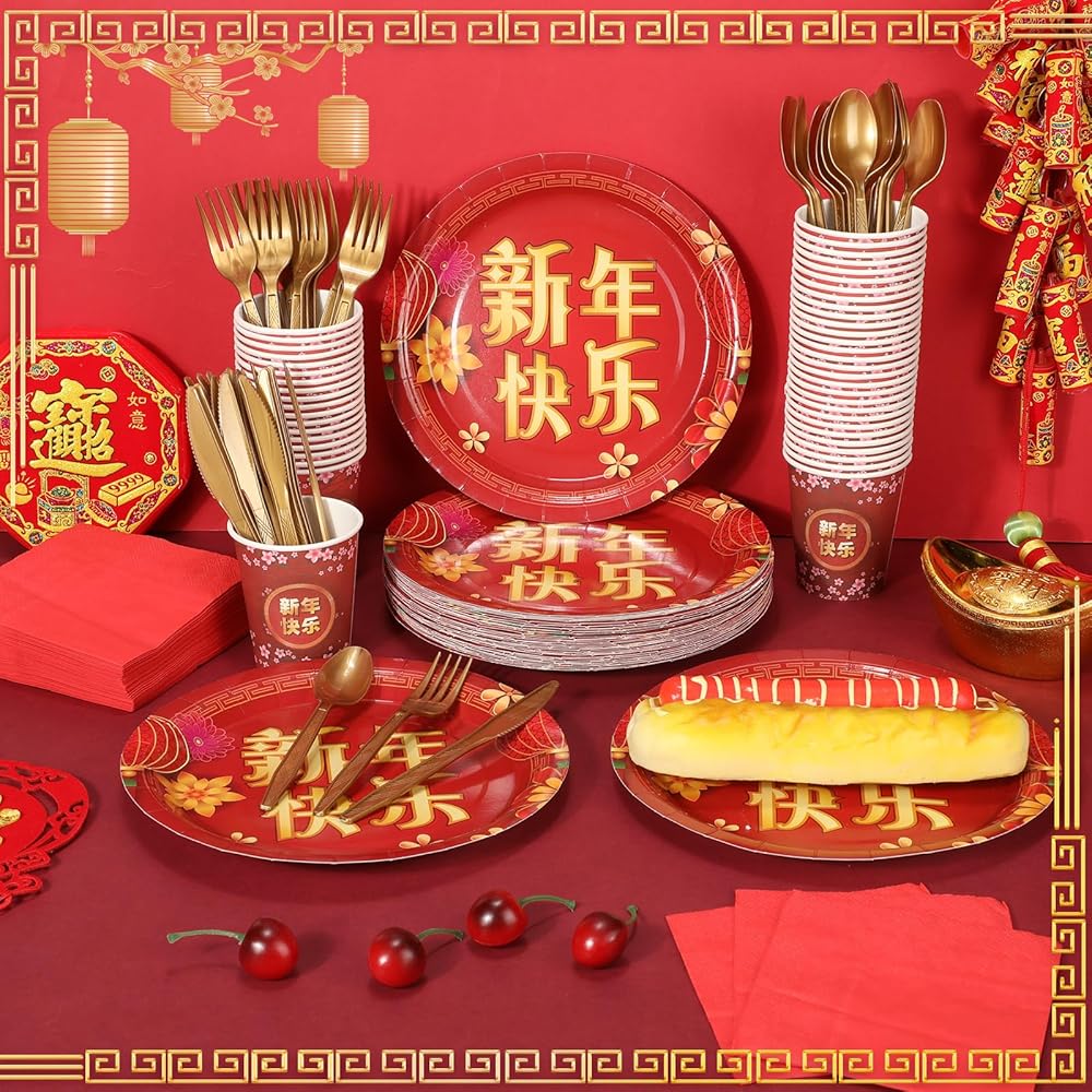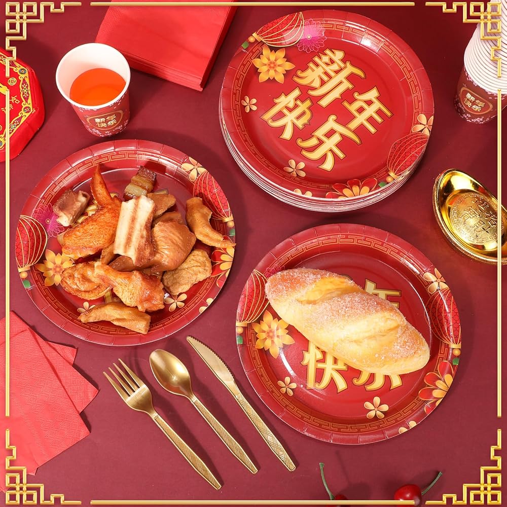 The Chinese New Year disposable tableware is rich in quantity, which allows you to serve 48 guests at the same time.