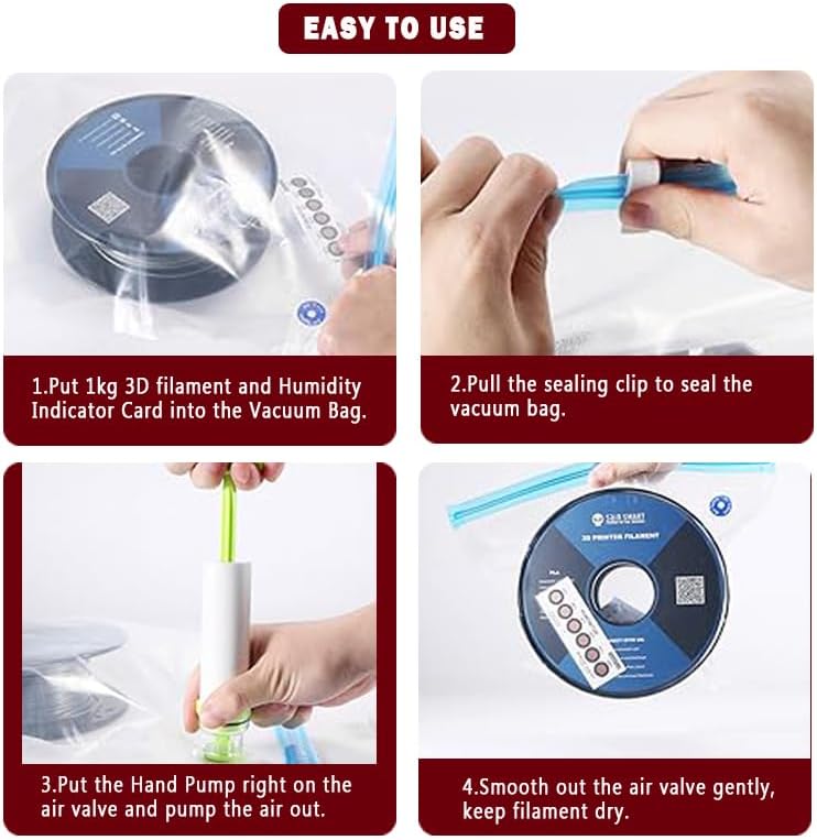 COST EFFECTIVE STORAGE: Our filament storage bags system reduces the need for expensive filament dryers. Even damaged filament can be dried in a filament dry box, then stored in our bags for long-lasting usage