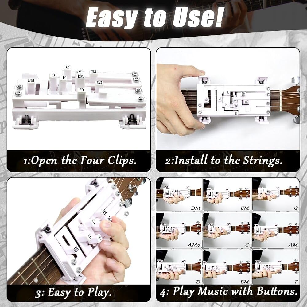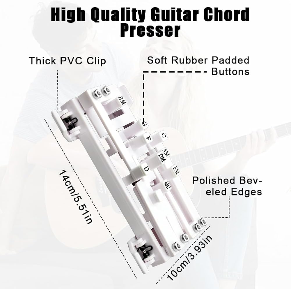 Perfect Gift : The Guitar Chord Presser Trainer هو هدية مثالية لعشاق الجيتار في سن المراهقة والبالغين أو المبتدئين في المراحل المبكرة من تعلم الغيتار. يمكن لأي شخص أن يتعلم بسرعة وسهولة العزف على الجيتار مع هذه الأداة.