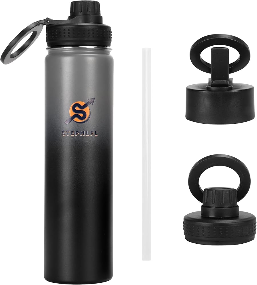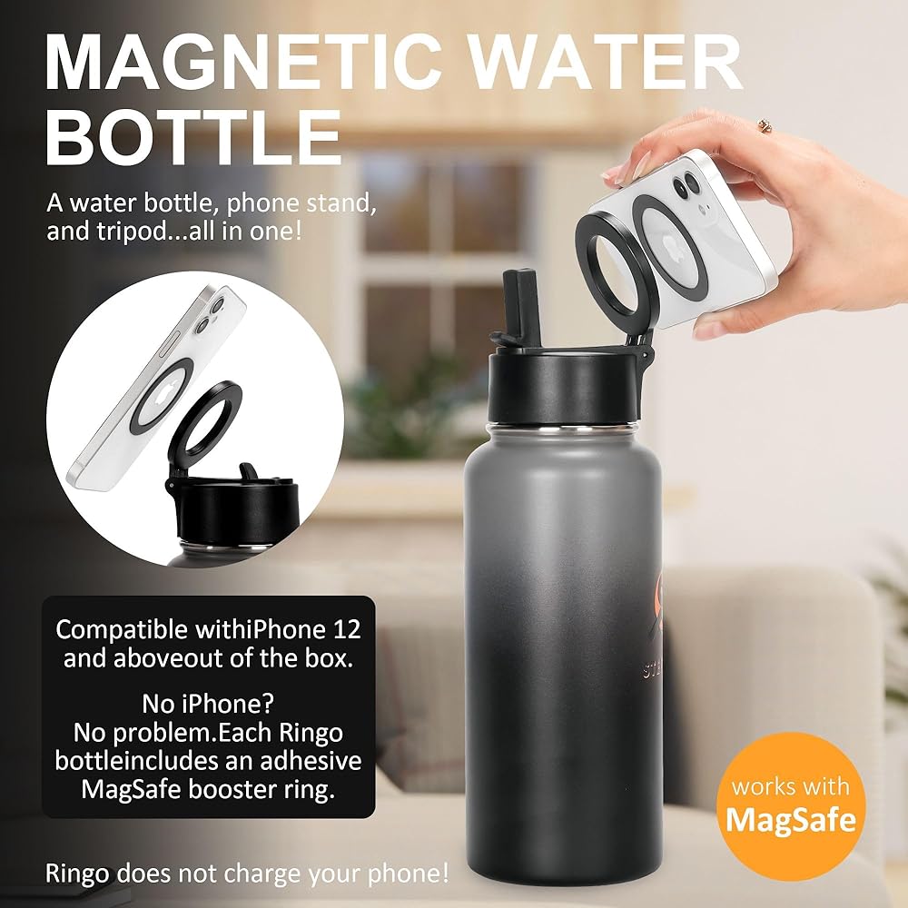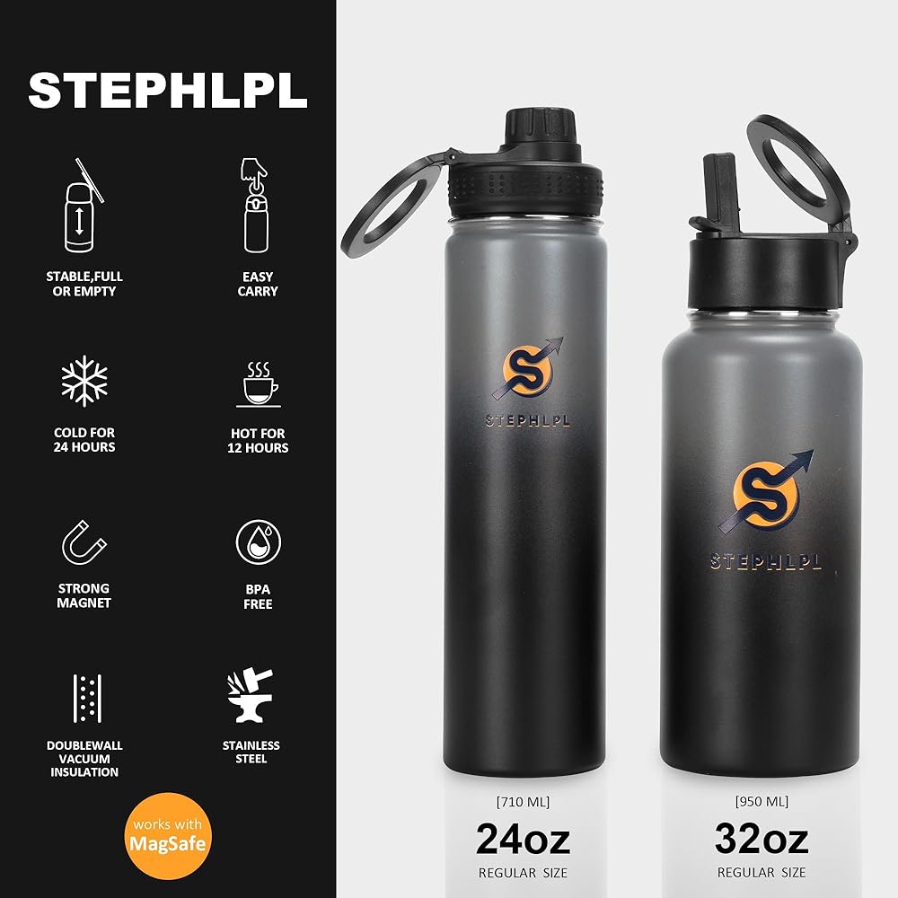 Elevate your hydration and connectivity with the STEPHLPL water bottle, a versatile companion for students and busy individuals. This insulated bottle offers two convenient lids - a straw lid and a spout lid - for flexible drinking options. The standout feature is its magnetic phone mount, compatible with MagSafe and other devices using the included Magnetic Booster Ring. Securely multitask with your phone or tablet mounted on the bottle's 360° rotating and 90° tilting solid base. With a sleek design and practical functionality, the STEPHLPL water bottle seamlessly integrates hydration and technology into your on-the-go lifestyle. Stay refreshed and connected effortlessly.