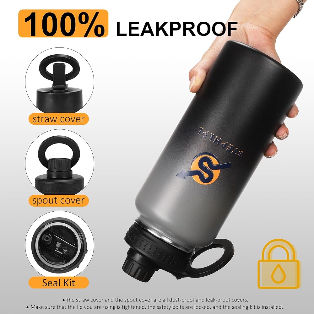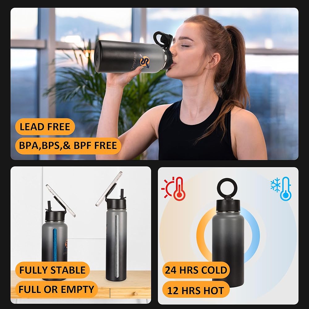 Versatile Hydration: Enjoy flexibility with dual lids—straw and spout—for effortless drinking. Ideal for workouts, travel, or work, this leak-proof stainless steel bottle ensures comfort, whether sipping on cold water for 24 hours or hot beverages for up to 12 hours.