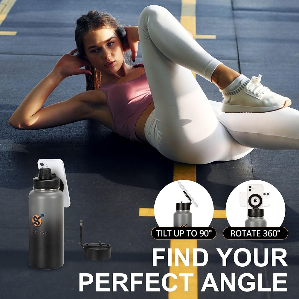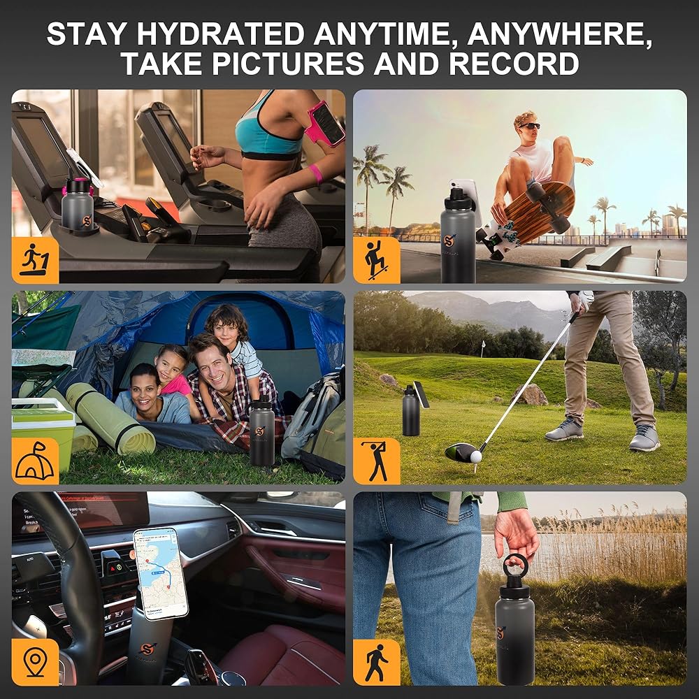 Advanced Design and Technology: The STEPHLPL water bottle showcases a stylish and modern design, combining innovative features like a magnetic phone mount, dual lids, and 360° rotation. With its sleek appearance and cutting-edge functionality, it's perfect for active, tech-savvy individuals.