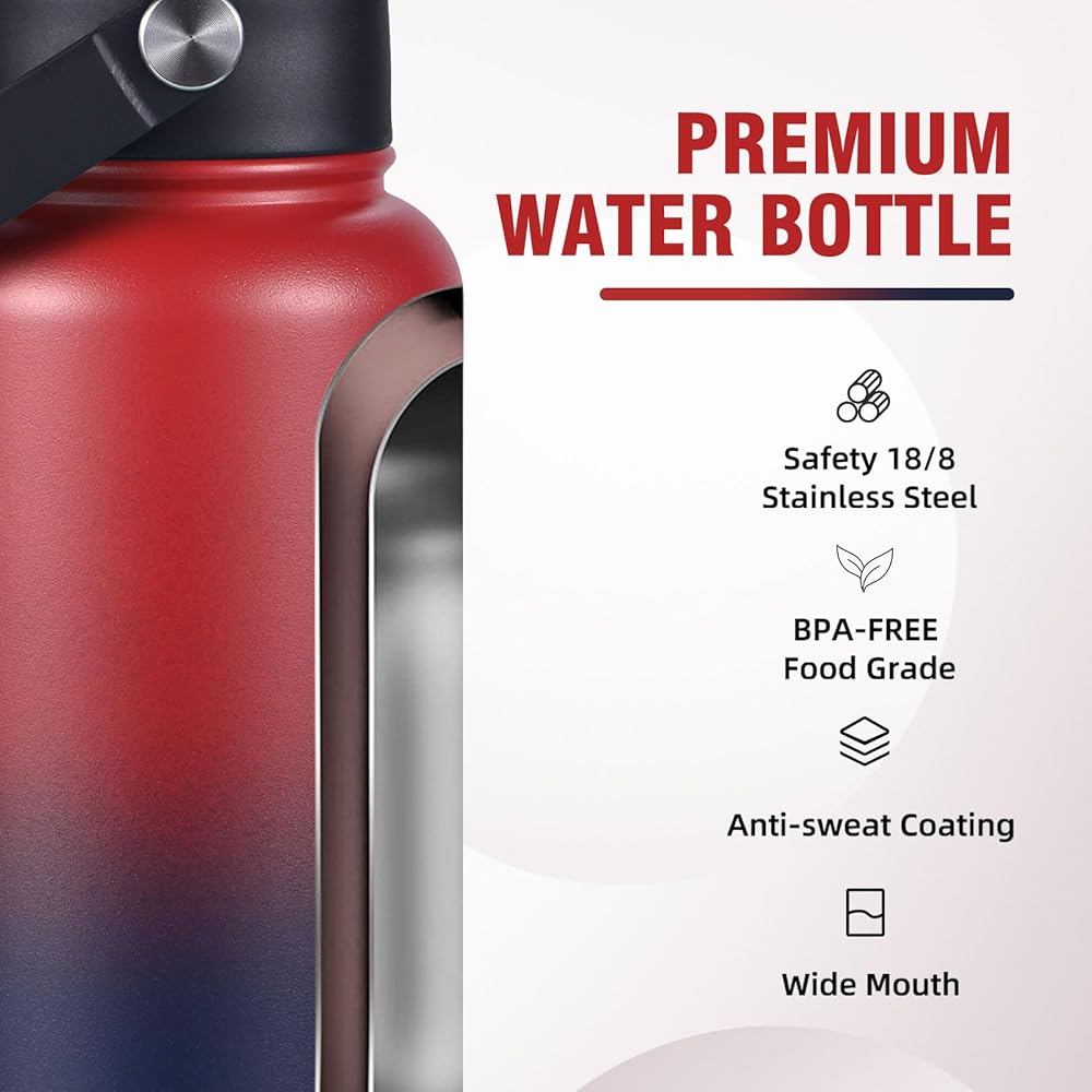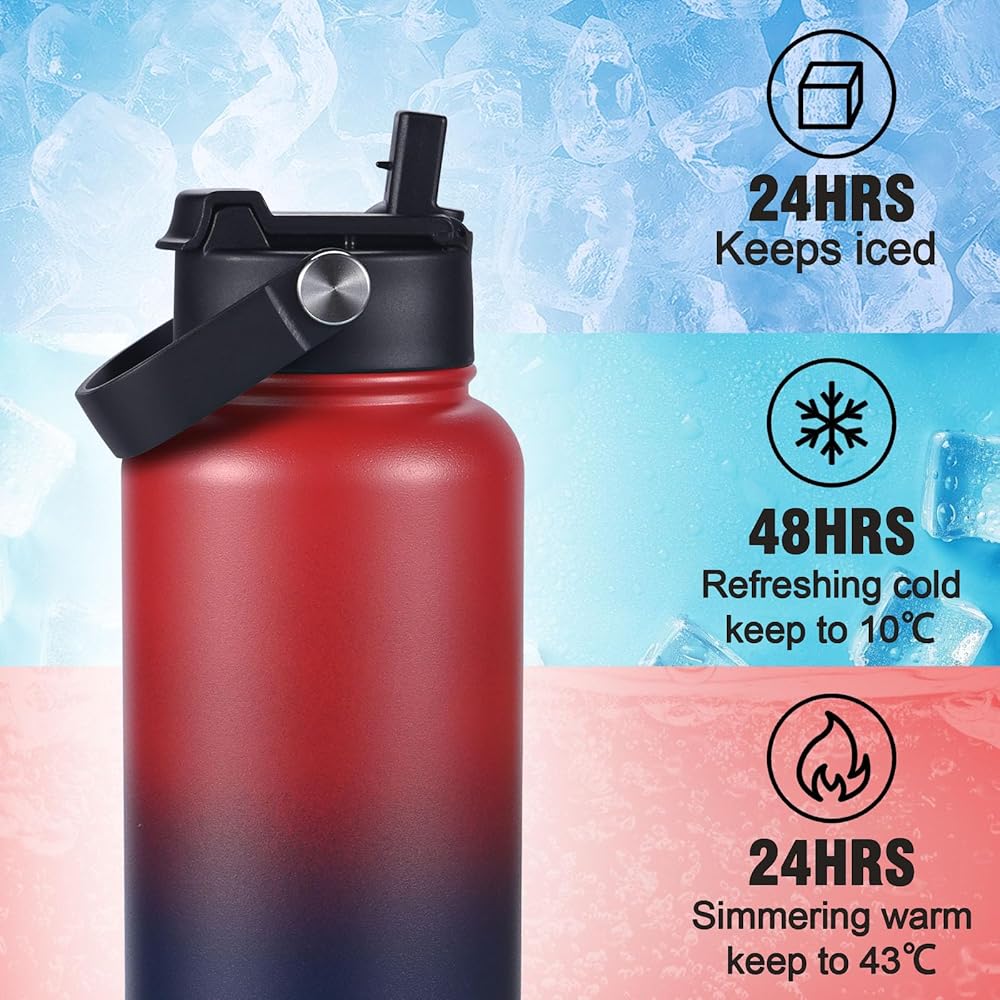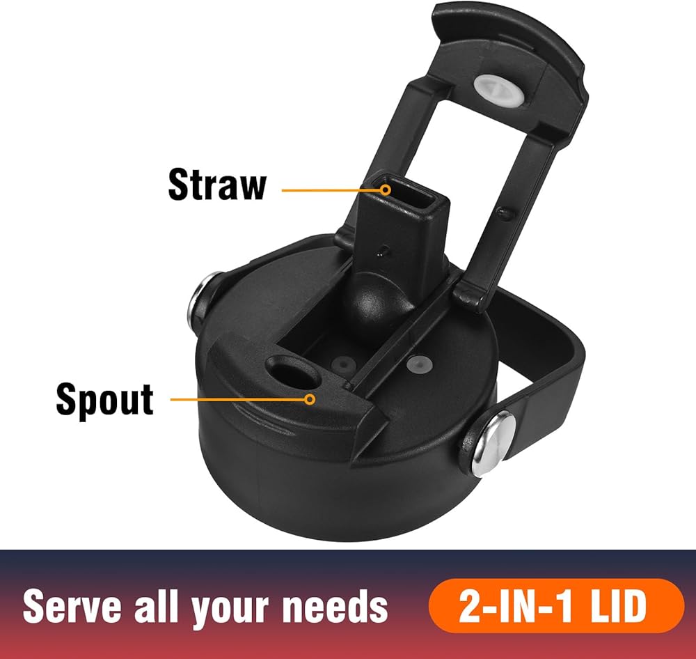 • 【الأغطية متعددة الاستخدامات】 تأتي زجاجة مياه 32 أوقية مع اثنين من الأغطية الفردية لتلبية جميع احتياجاتك. 2 في 1 غطاء: رشفة مشروبات ساخنة مع الناطقة بلسان الفم ، واستمتع بالمشروبات الباردة مع القش ، من الأسهل شربها لعملية واحدة أو احتساء خالية من اليدين عندما تكون مشغولاً أو أثناء التنقل. غطاء المقبض: احمله بسهولة أو قم بتوصيله بحقيبة ظهر مع المقبض المدمج.