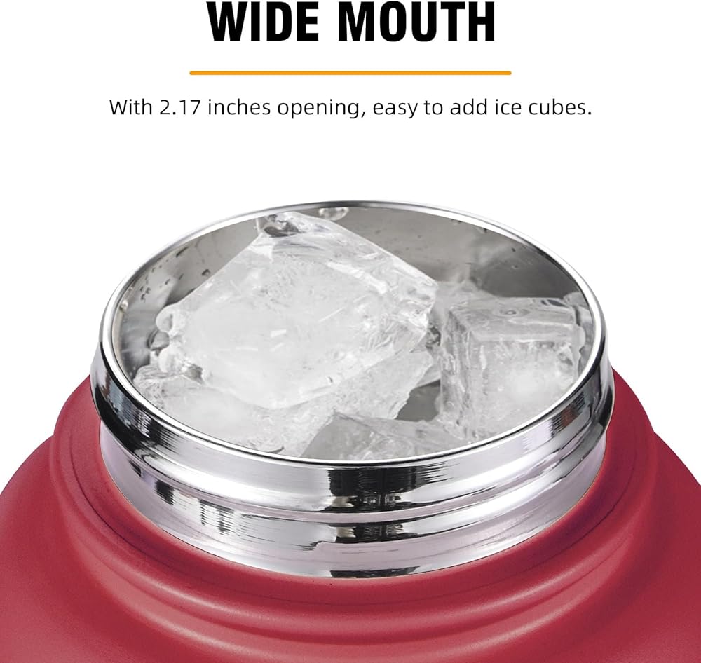 • 【فتحة واسعة】 مع فتحة فم واسعة 2.17 بوصة ، مما يجعل ملء الجليد وتنظيفه سهلة. مثالي للعمل ، والرياضة ، والمشي والرحلة. يناسب معظم أصحاب الكؤوس وحقائب الظهر ، مما يضمن أن الترطيب دائمًا في متناول اليد.