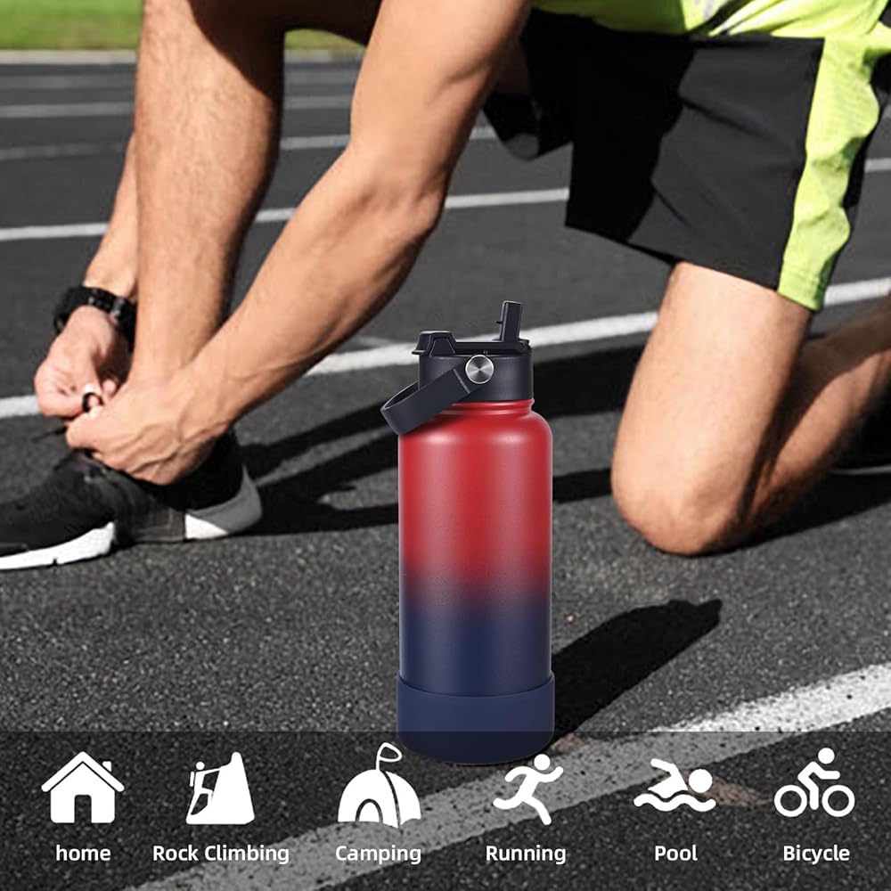 Colorsub 32 أوقية زجاجة ماء معزول مع اثنين من الأغطية (قش القش وغطاء المقبض) ، الفولاذ المقاوم للصدأ BPA خالية