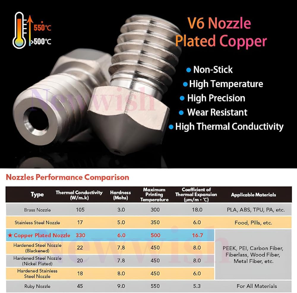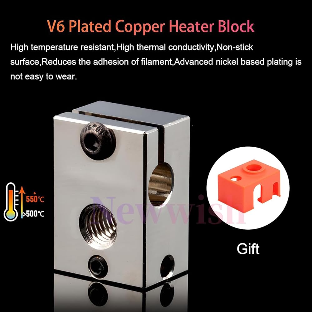 High Temperature : The V6 heater block is made from a special high-temperature copper-alloy. This alloy has a high softening point, well above 500°C, which makes it makes it very suitable for high-temperature 3D printing that other heater blocks might not be able to handle,Works perfectly with all filaments,such as PLA, ABS, PETG, TPU, PP, PC, PA, Nylon, PEEK, PEI etc.