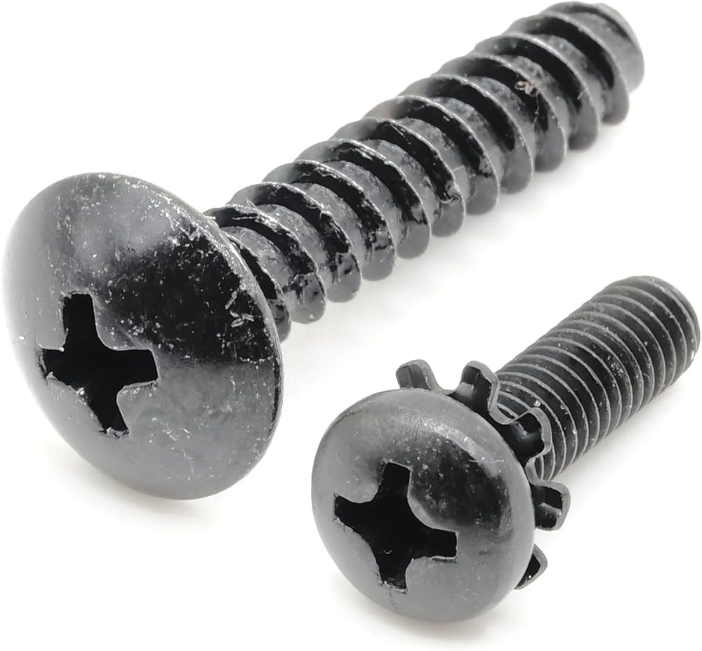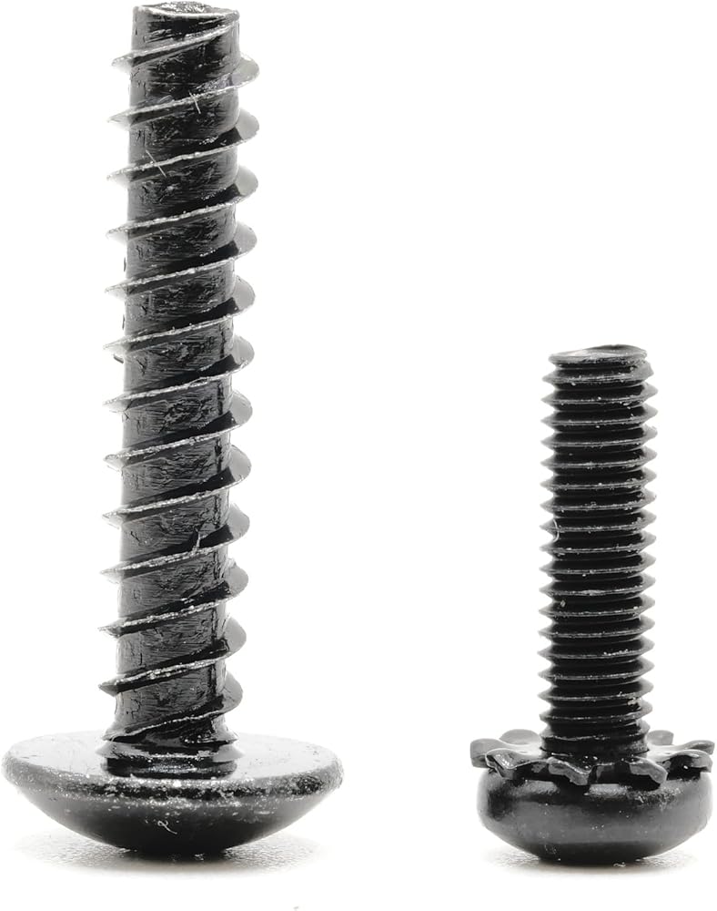 CORRECT SIZE / THREAD: The screws are perfectly sized and threaded for its application. The fine threaded machine screws go into pre-threaded metal holes or inserts. The coarse self-tapping screws are designed to go into plastic holes or receivers using minimal torque.
