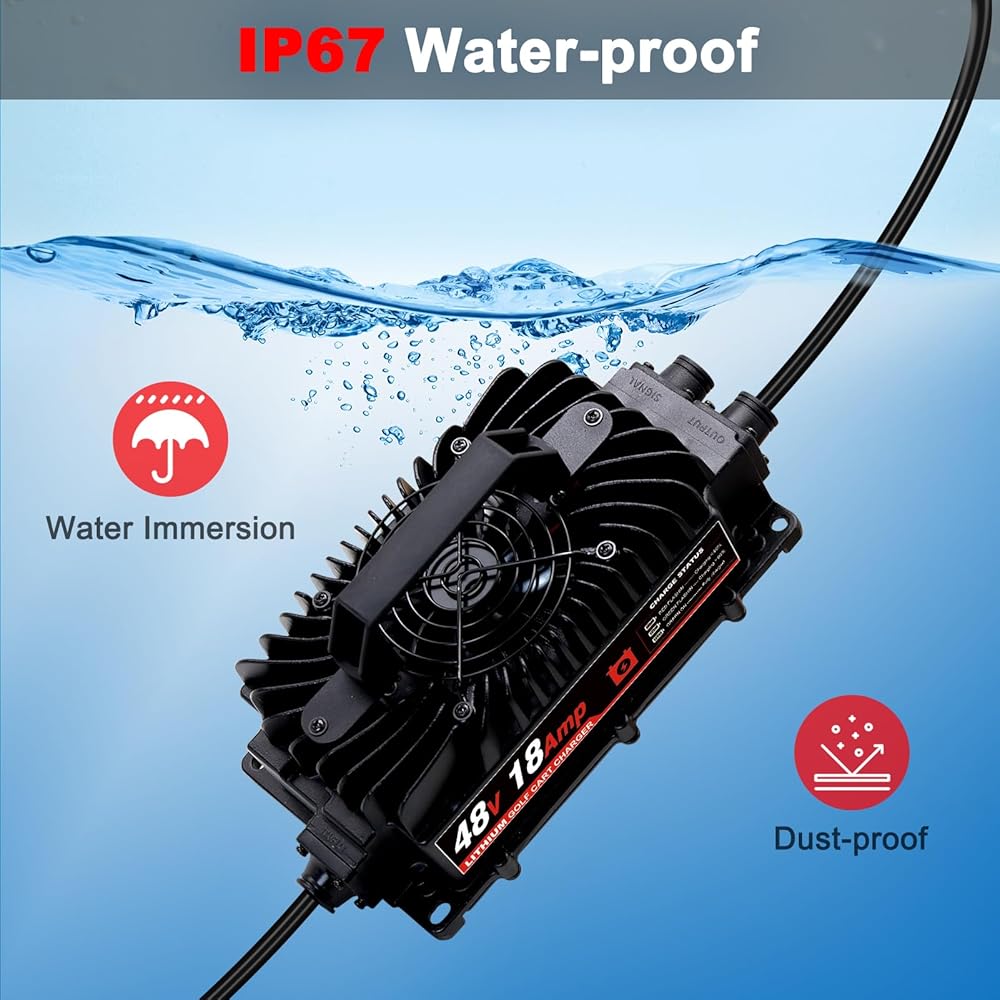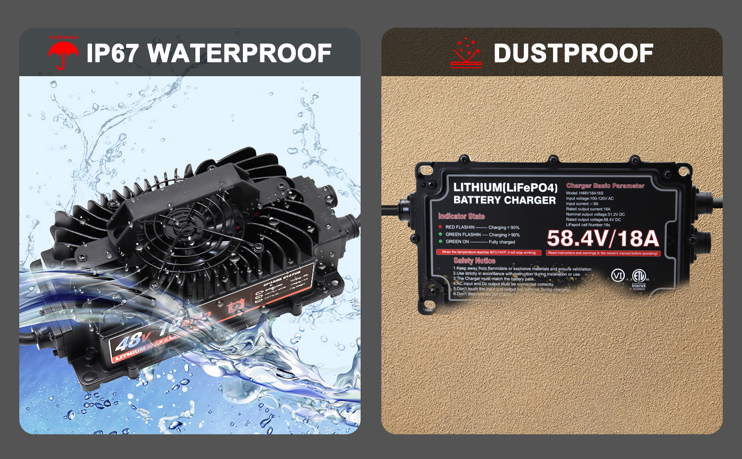 【شاحن البطارية المقاوم للماء والغبار مع تصنيف مقاوم للماء IP67 ، لا داعي للقلق بشأن الشاحن الذي يتلف بسبب الماء أو الغبار أو الاهتزاز.