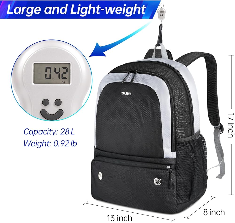 حقيبة ظهر للمخلل كبيرة: البعد: 13 × 8 × 17 بوصة. تبلغ سعة حقيبة Pickleball 28 لترًا ، وهي كبيرة بما يكفي لتخزين جميع معدات المخلل. أيضًا ، يوجد مقسم في المقصورة الرئيسية حيث يمكنك وضع الكمبيوتر المحمول أو iPad إذا كنت تريد. يمكنك حمل حقيبة Bickleball بسهولة. سواء كان الاندفاع إلى الميدان أو العودة إلى المنزل متعبًا بعد التدريب ، يساعدك على التخلص من العبء