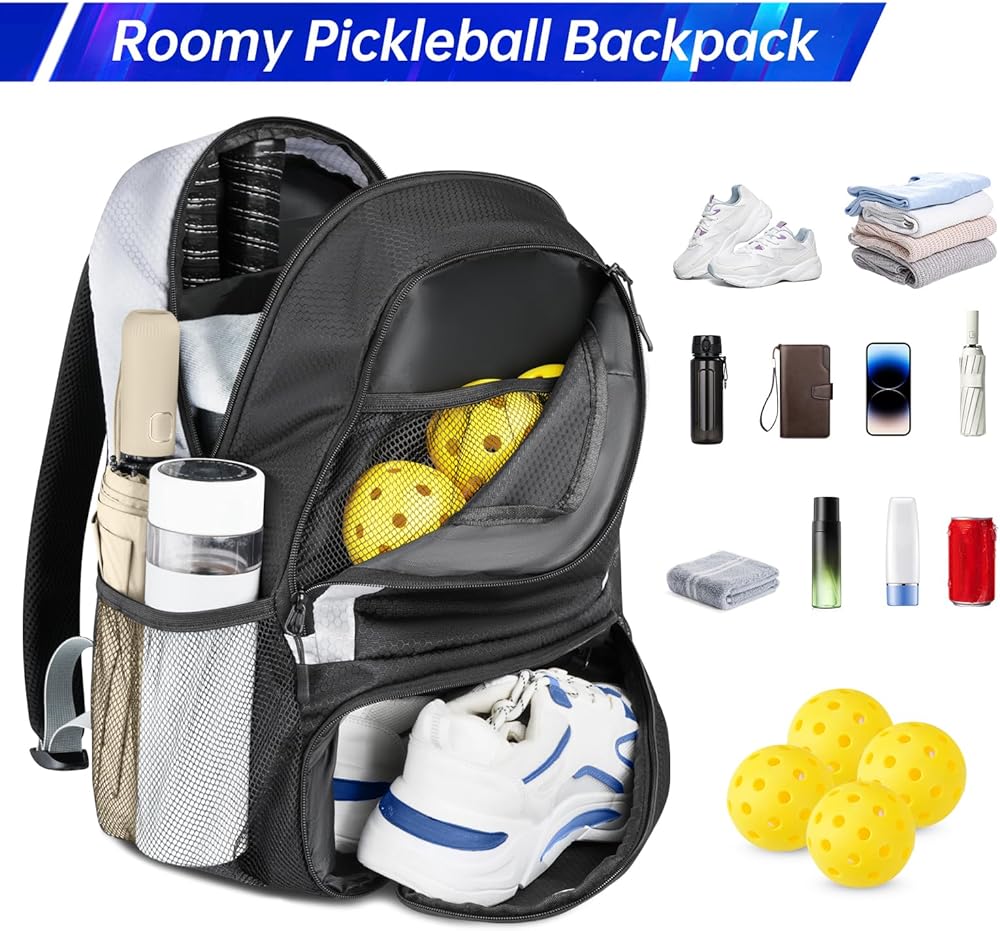 حقيبة BACLEBALL BAC Pickleball مع مقصورة الأحذية ، خطاف السياج للرجال ، أكياس مجداف كبيرة من المخللات ، تحتوي على مجاذيف ، وأحذية ملابس ، وملحقات للمخلل ، وحقيبة فقط