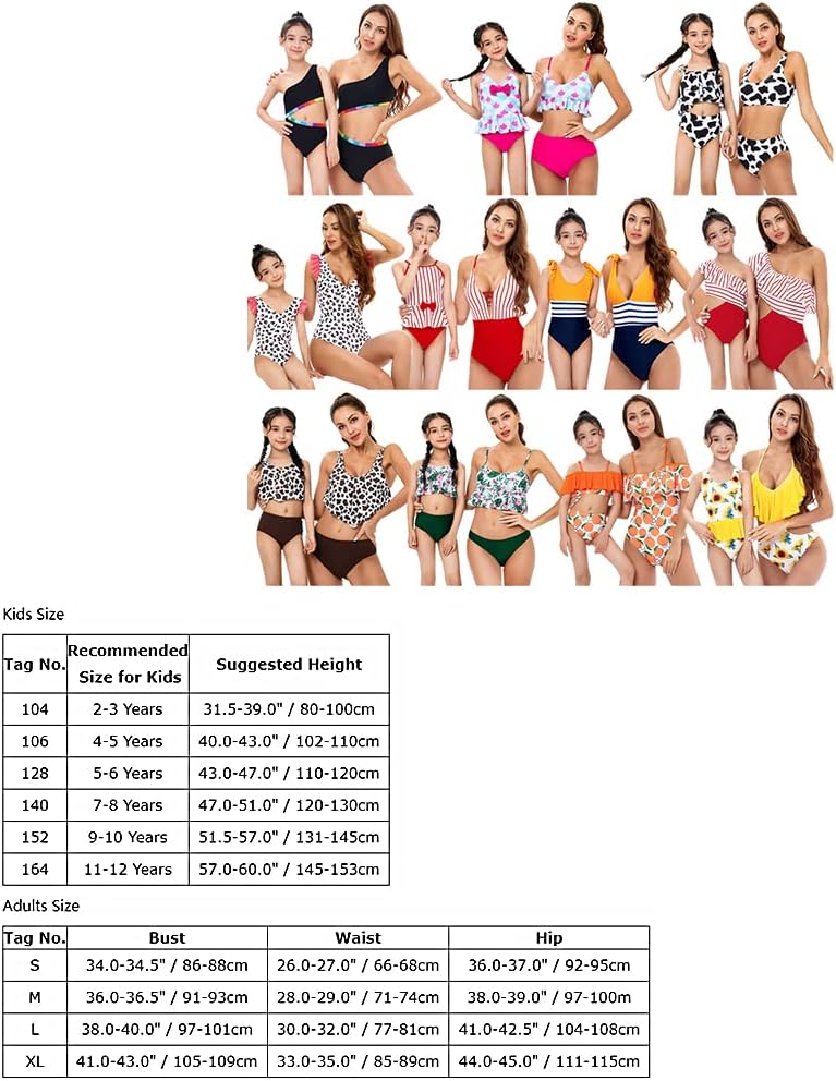 Size Select : Mommy and Me summer party swim outfit, fit for S-XL women and 2-12 years old girls. This mommy and daughter bathing suit SOLD SEPARATELY. If you want both Womens and Girls swimsuit and use them for Matching, please add a women size and a girl size into your shopping cart. Please select the appropriate size according to Size Chart. It is also the best holiday gift for your family, mommy, aunties,daughter, friends and lover on special days or everyday.