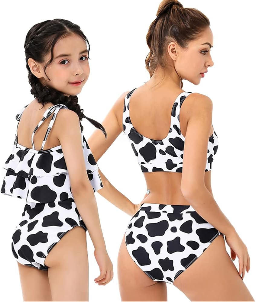 Stylish Design : Cutest family matching swimwear, one piece swimsuit or two pieces bikini set, let you and your kids interact more intimate. Mother and daughter one piece swimwear, stylish design brings you the best in swim fashions, rainbow cow leopard striped fruit mermaid sunflower floral leaves printed, One Shoulder slim strp ruffle tie straps cut out , bright color and cute prints, matching the same style printing swimsuit with your kids, best choice for swimming and shooting.