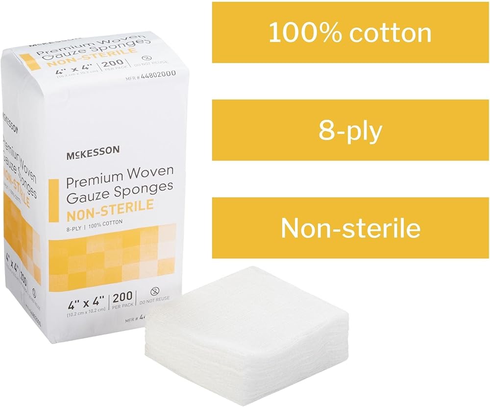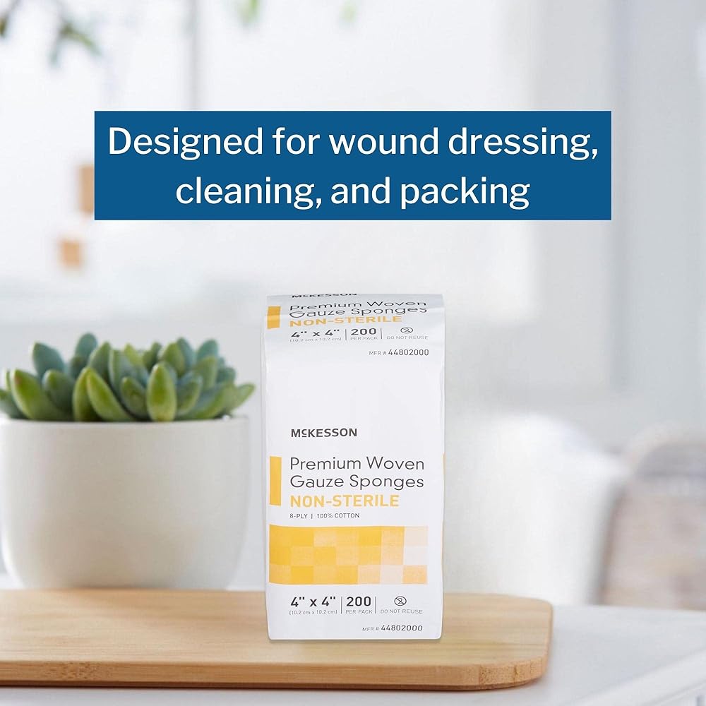 إسفنج الشاش المنسوج من McKesson Premium ، غير سريلي ، 8 طلاء ، 100 ٪ من القطن ، 4 في × 4 بوصات ، 200 لكل حزمة ، 1 حزمة