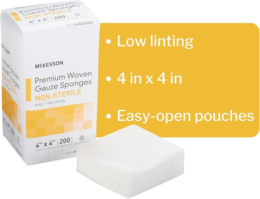 - اللاتكس خالية ، الإسفنج الشاش هي 4x4 و 8 رقائق. من المفترض أن تستخدم مرة واحدة ويمكن التخلص منها للحفاظ على النظافة
