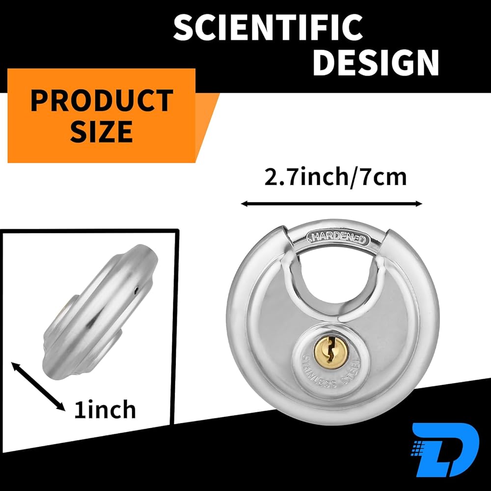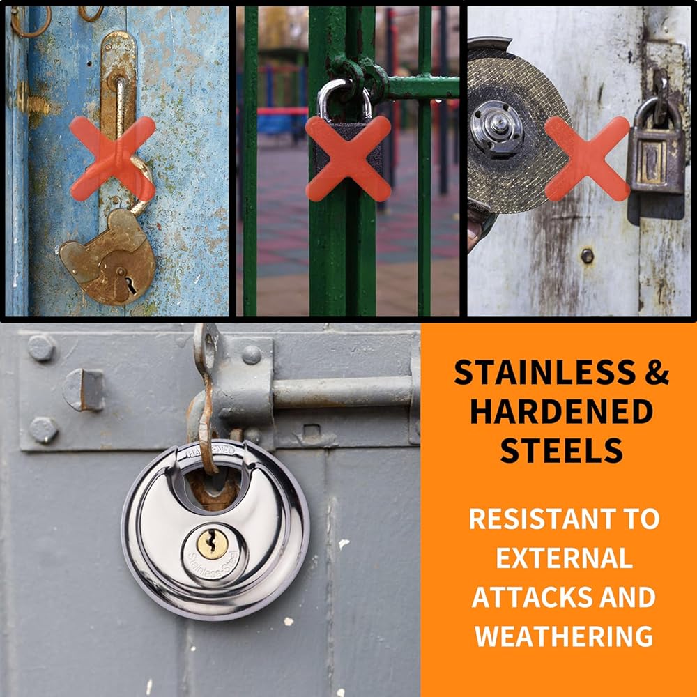 قفل القرص الثقيل لوحدة التخزين ، قفل القرص المقاوم للماء من الفولاذ المقاوم للصدأ مع مفتاح ، قفل الأسطوانة لخزانة التخزين ، أمان البوابة الخارجية - 1 حزمة