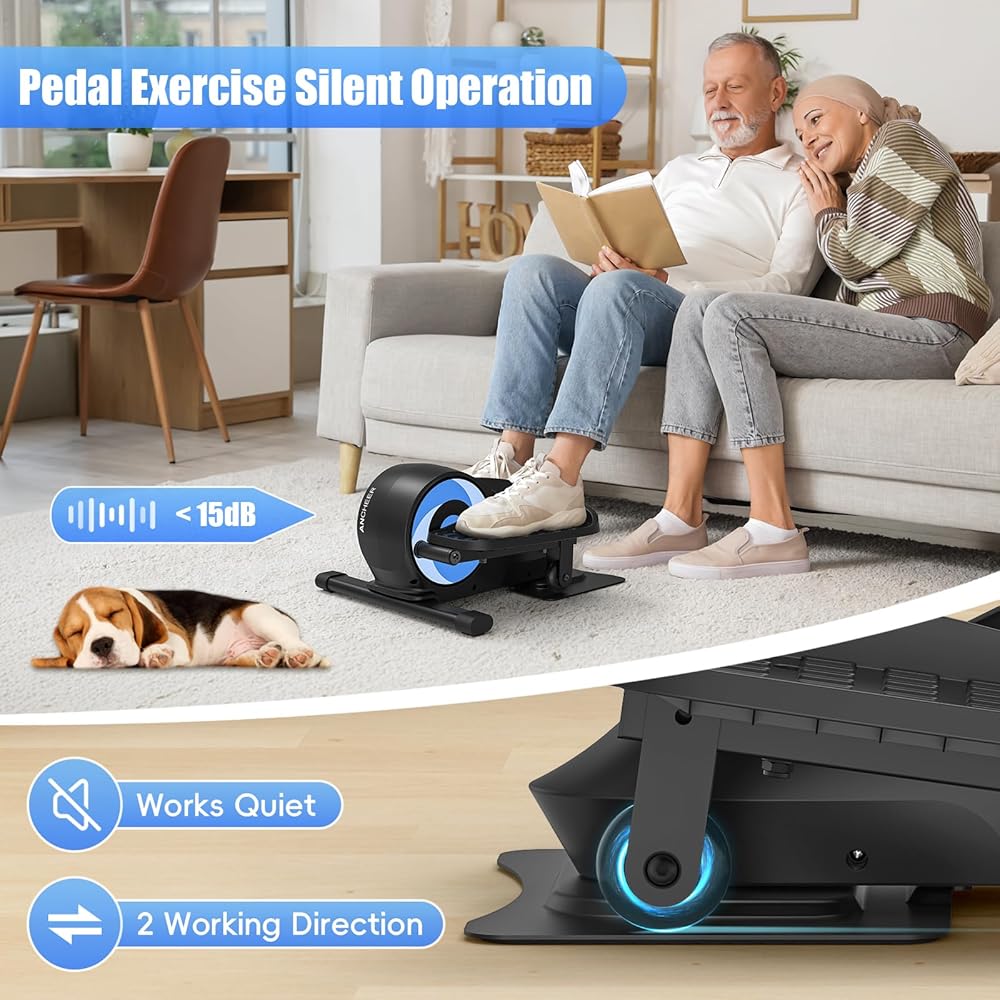【Versatile & Portable】Ditch the bulky gym gear! The compact ANCHEER mini elliptical can be used sitting or standing, pedaling forward or backward. Perfect for core and leg strength, joint flexibility, and fits neatly under your desk for easy use anytime, anywhere.
