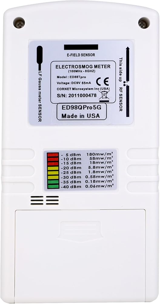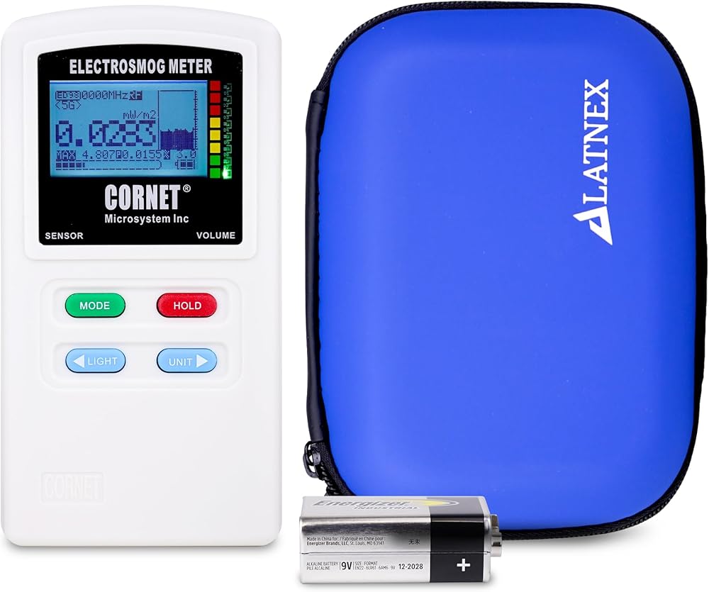 [ Cornet ED98QPro5G ] is a High Performane Quad-mode Electrosmog Meter which measures high frequency (RF) electromagnetic wave field strength and power density, low frequency (LF) Magnetic field level, low frequency (ELF) electric field, and Light Flicker rate in living environments