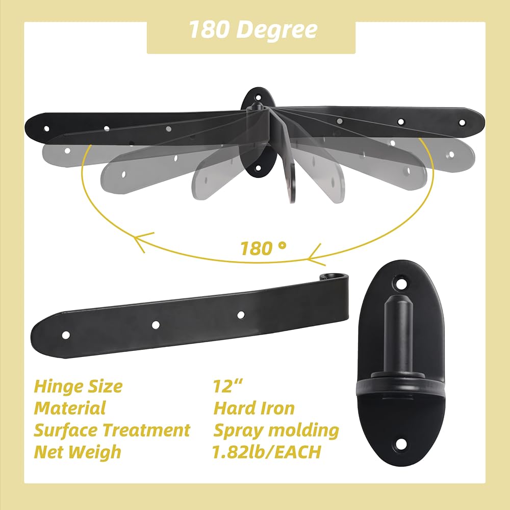 4 مساءً مفصلات حزام بوابة 12 بوصة ، 180 درجة ، مفصلات الشريط الثقيلة ، والرفع على شكل حرف T من المفصلي مع دبوس قابلة للإزالة لأبواب الحظيرة ، وأبواب سقيفة ، وأبواب الجراج