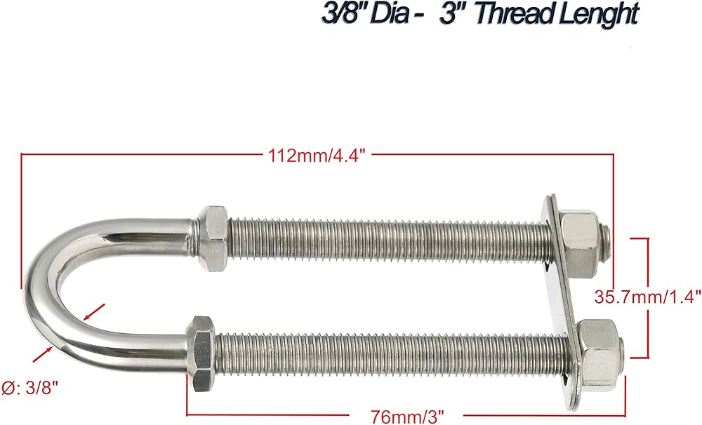 amarine من الصنع الفولاذ المقاوم للصدأ القارب البحري القوس ستيرن القوس التعادل لأسفل u الترباس (1/2 بوصة و 3/8 بوصة اختيارية) (الفضة ، 3/8 "ديا-3" خيط lenght)