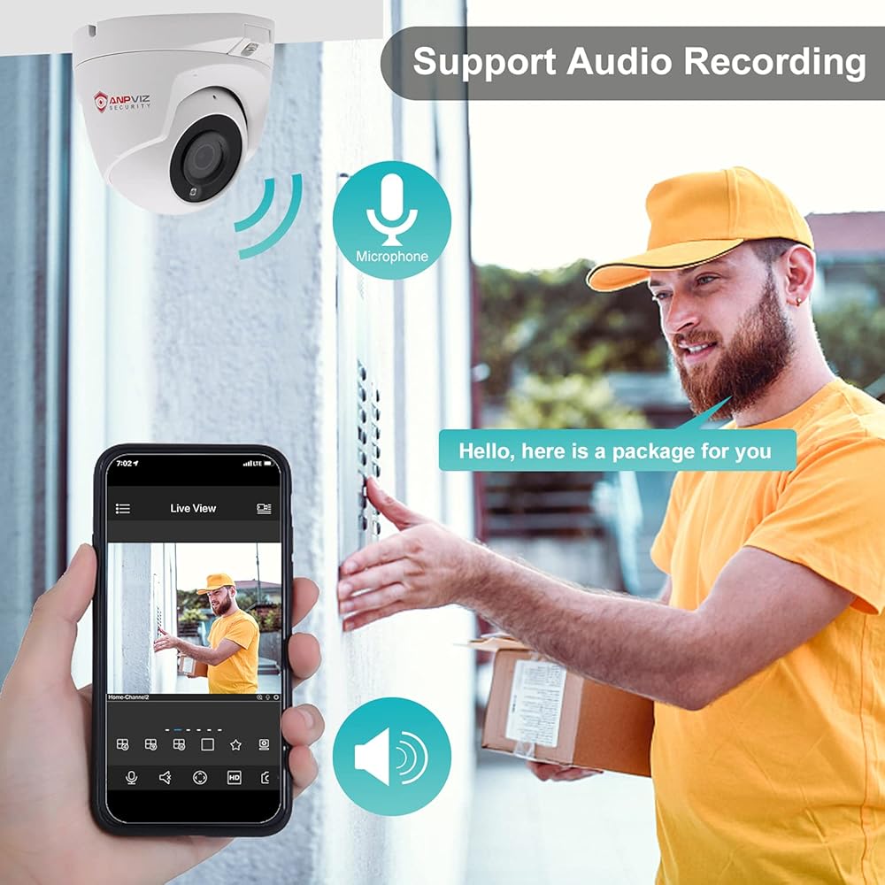 كاميرا Anpviz 5MP IP POE Dome في الهواء الطلق مع اكتشاف الإنسان، كاميرا مراقبة فيديو برجية داخلية وخارجية مع صوت، زاوية واسعة 108 درجة عدسة 2.8 ملم IP66 مقاومة للماء 98 قدمًا رؤية ليلية، أبيض
