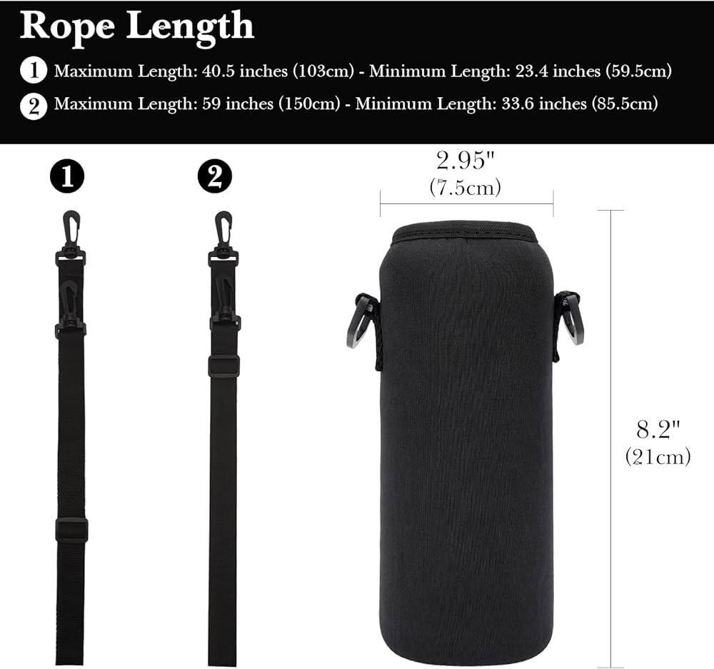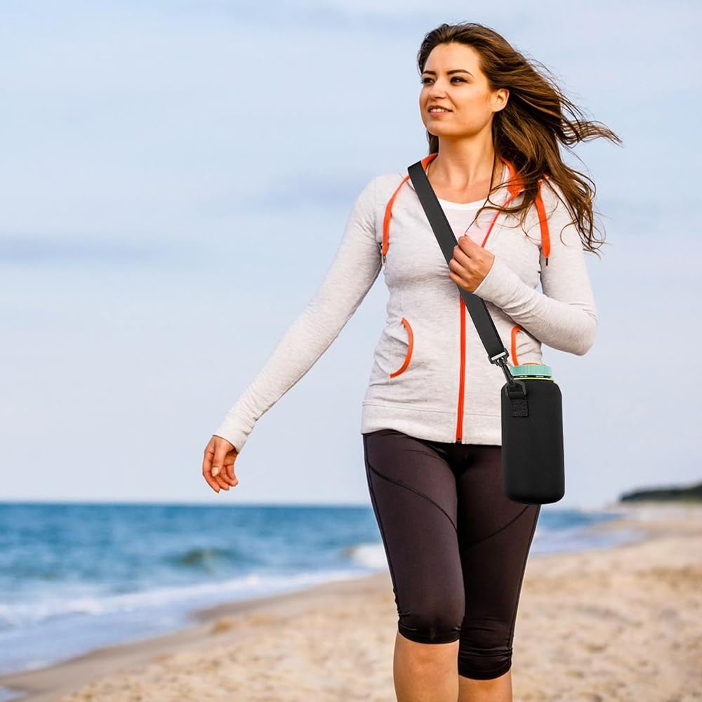 حاملة زجاجة مياه النيوبرين من Linkidea مع حزام متوافق مع النالجين يحافظ على الفم العريض/الضيق 32 أوقية ، حامل حقيبة حبال Waterbottle ، حزام طويل الكتف طويل (59 ') (أسود)