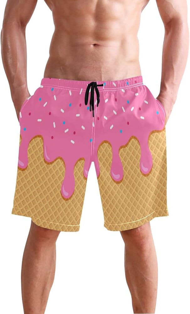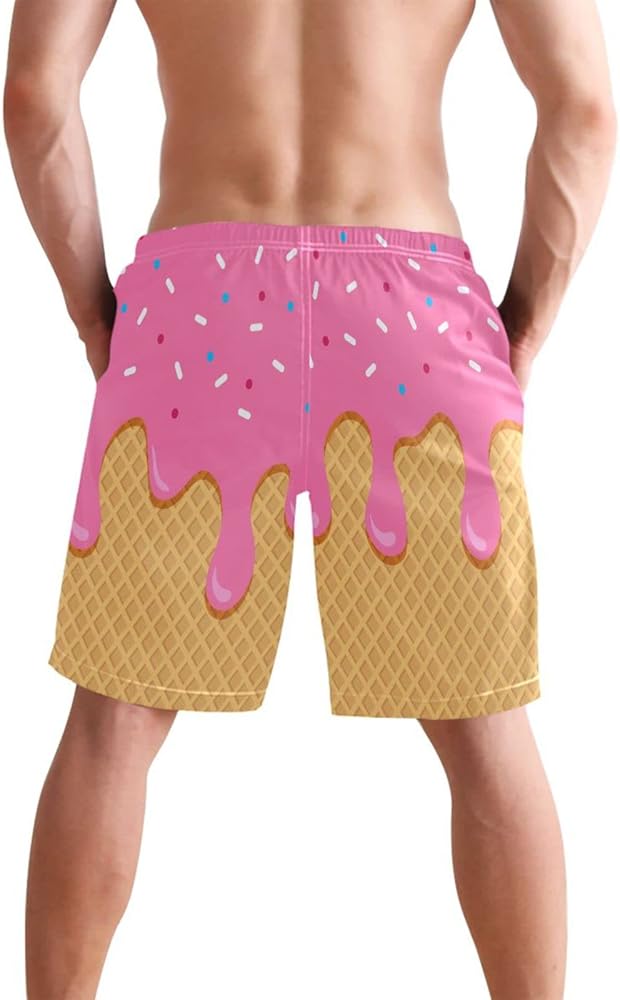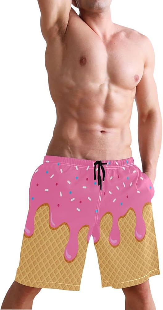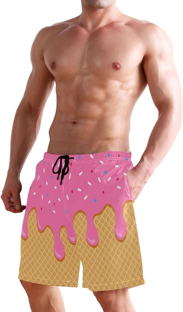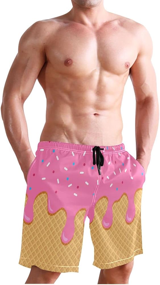 جذع السباحة للرجال ، شورت شاطئ الآيس كريم الوردي سريع الجاف الجاف البوليستر سراويل السباحة مع جيوب كبيرة