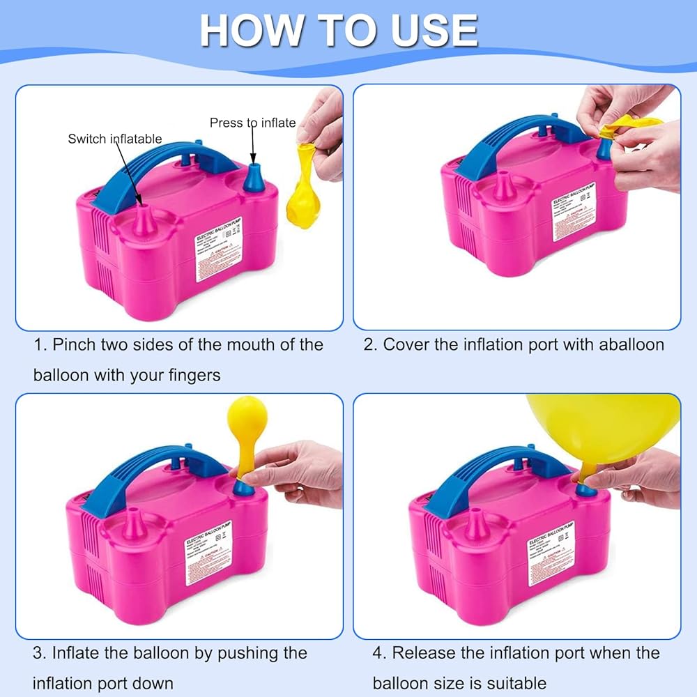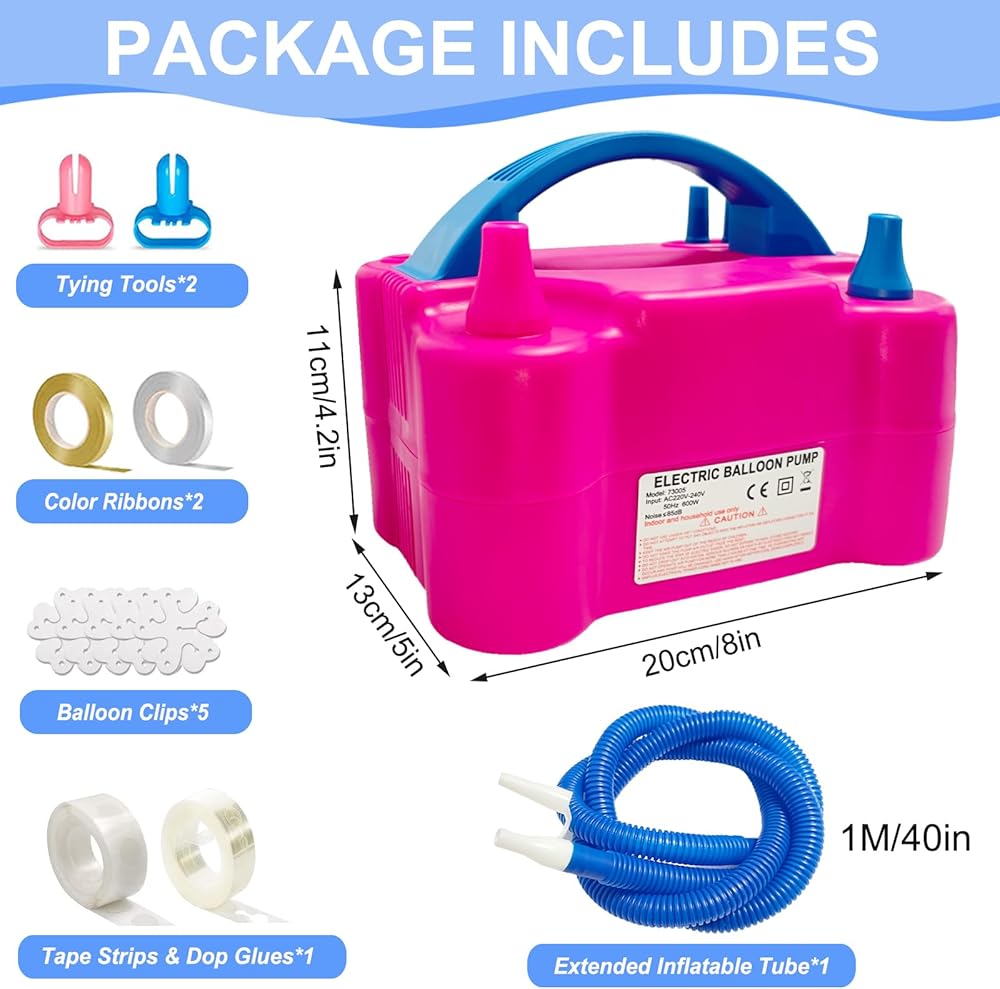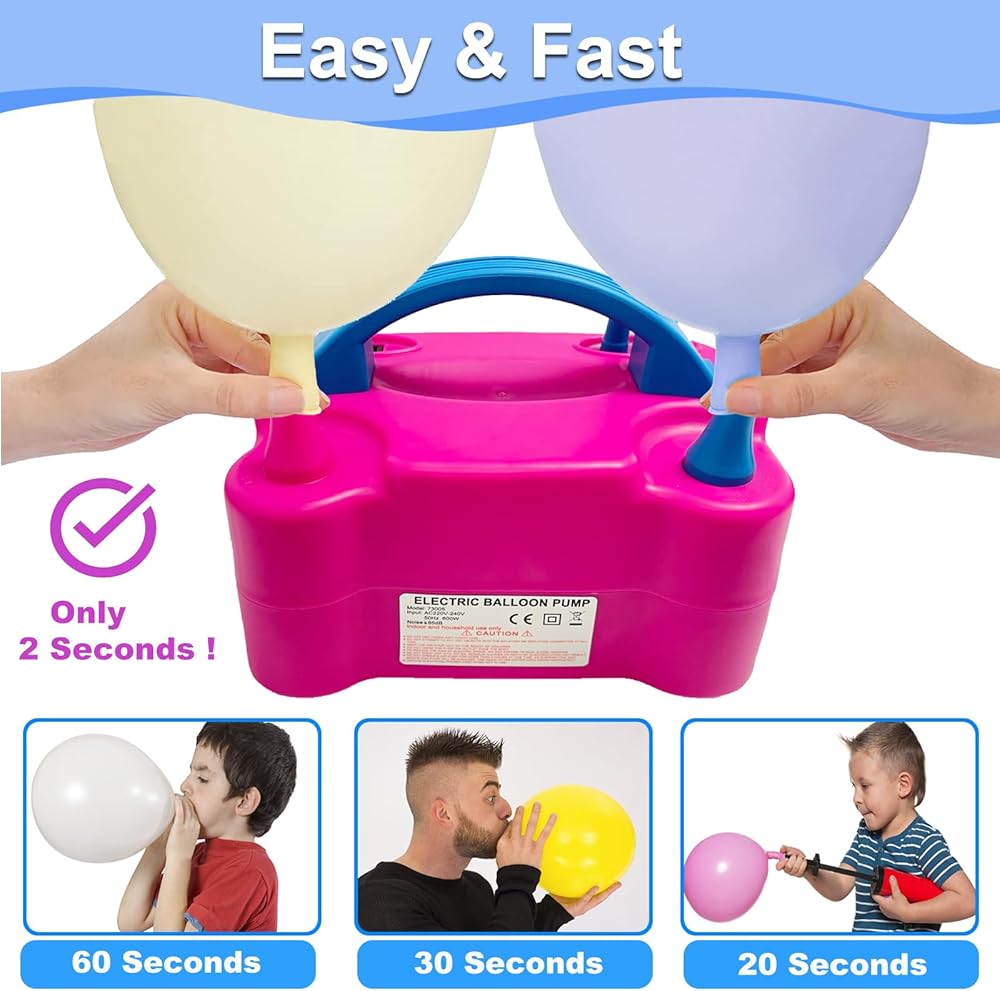 • 【مضخة البالون الكهربائية】 ستؤدي مضخة البالون الكهربائية الممتازة هذه إلى تضخيم مئات البالونات في أسرع وقت. حرر يديك ومنع اليدين. يعد هذا البالون نفخًا رائعًا لبعض الأحداث ، والمهرجانات ، ودش الأطفال ، وحفلات الزفاف ، والحفلات ، وأعياد الميلاد ، والاحتفالات. (ملاحظة: لا تنفجر 260Q/350Q بالونات ، بالونات الهيليوم ، بالونات ذات الطبقات المزدوجة ، حمام سباحة قابلة للنفخ ، عددهم وشكل الرسالة ، حلقة السباحة ، قارب قابلة للنفخ ، إطارات الدراجات ...)
