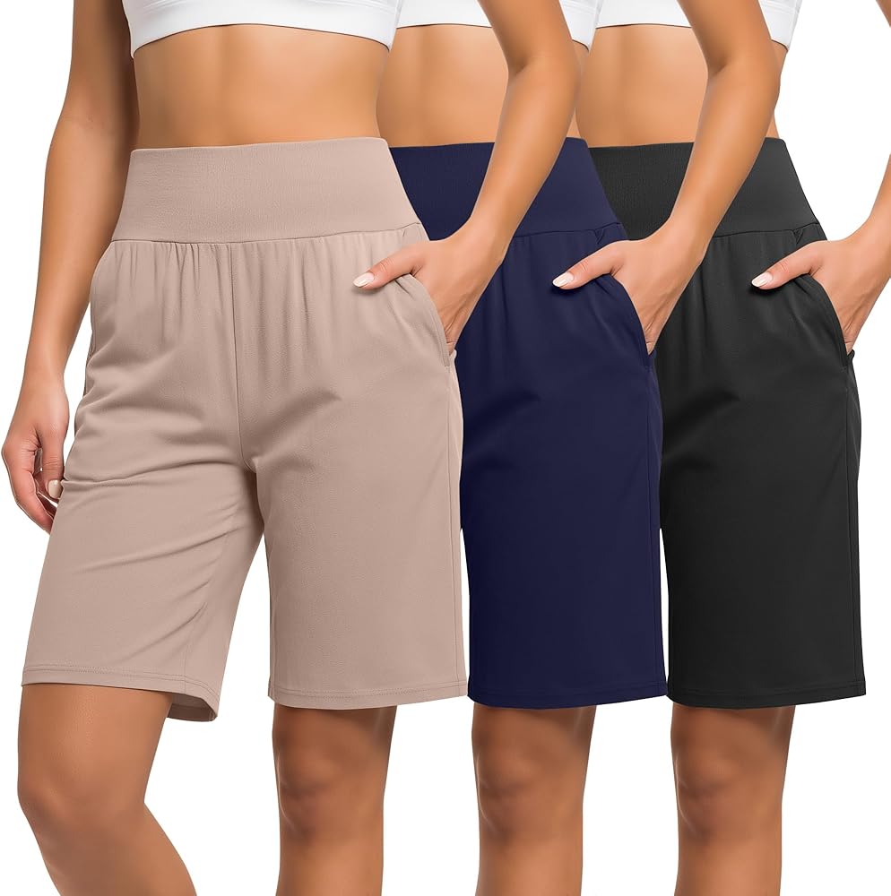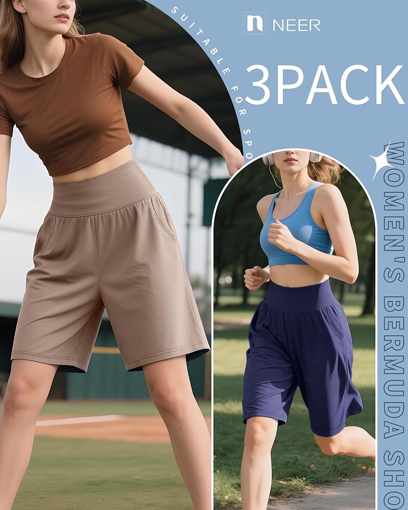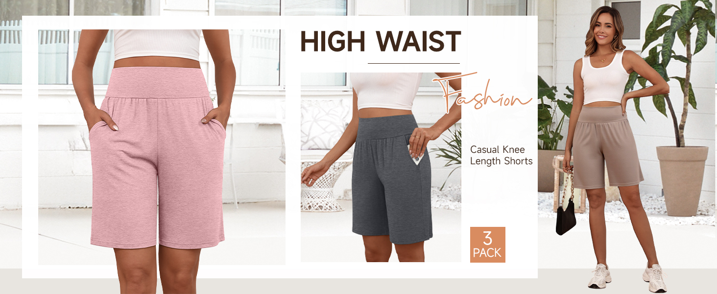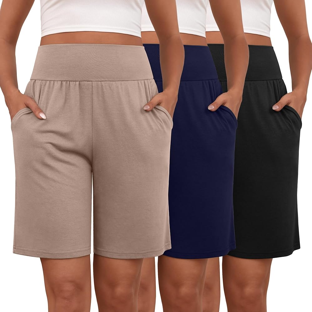 شملت الحزمة: ستحصل على 3 شورتات بطول ركبة برمودا للسيدات. مثالي لك ترتديه في الربيع والصيف والتمارين الرياضية واليوغا والصالة الرياضية والرياضية والعطلة والتسوق والجري والمشي والنوم والحياة اليومية وما إلى ذلك. مناسبة للعديد من المناسبات الرياضية