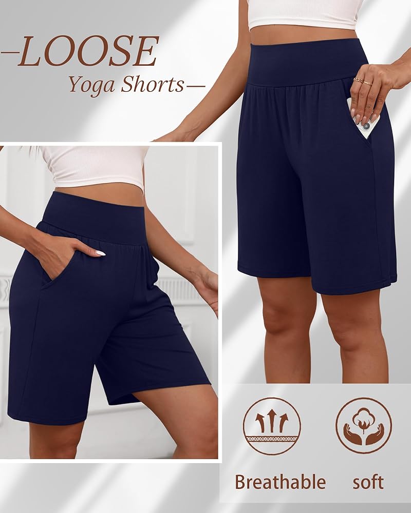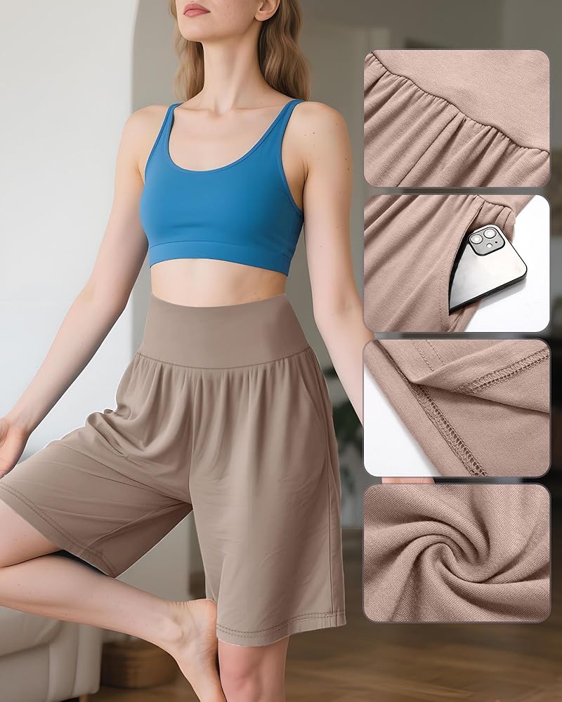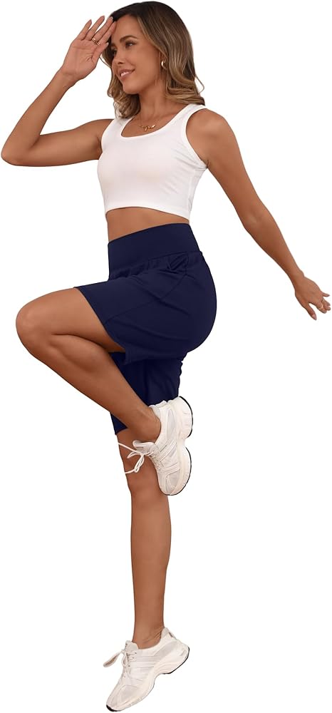 نظرة الإغراء: تتمتع شورتات صالة الامتداد للسيدات بتصميم مرن عالي الخصر لمنحك نوبة أكثر تجهيزًا. تجعل الجيوب العميقة على الجانب من السهل حمل هاتفك وعناصر أخرى دون الشعور بالضخمة. شورت برمودا حوالي الطول الصحيح فوق الركبة