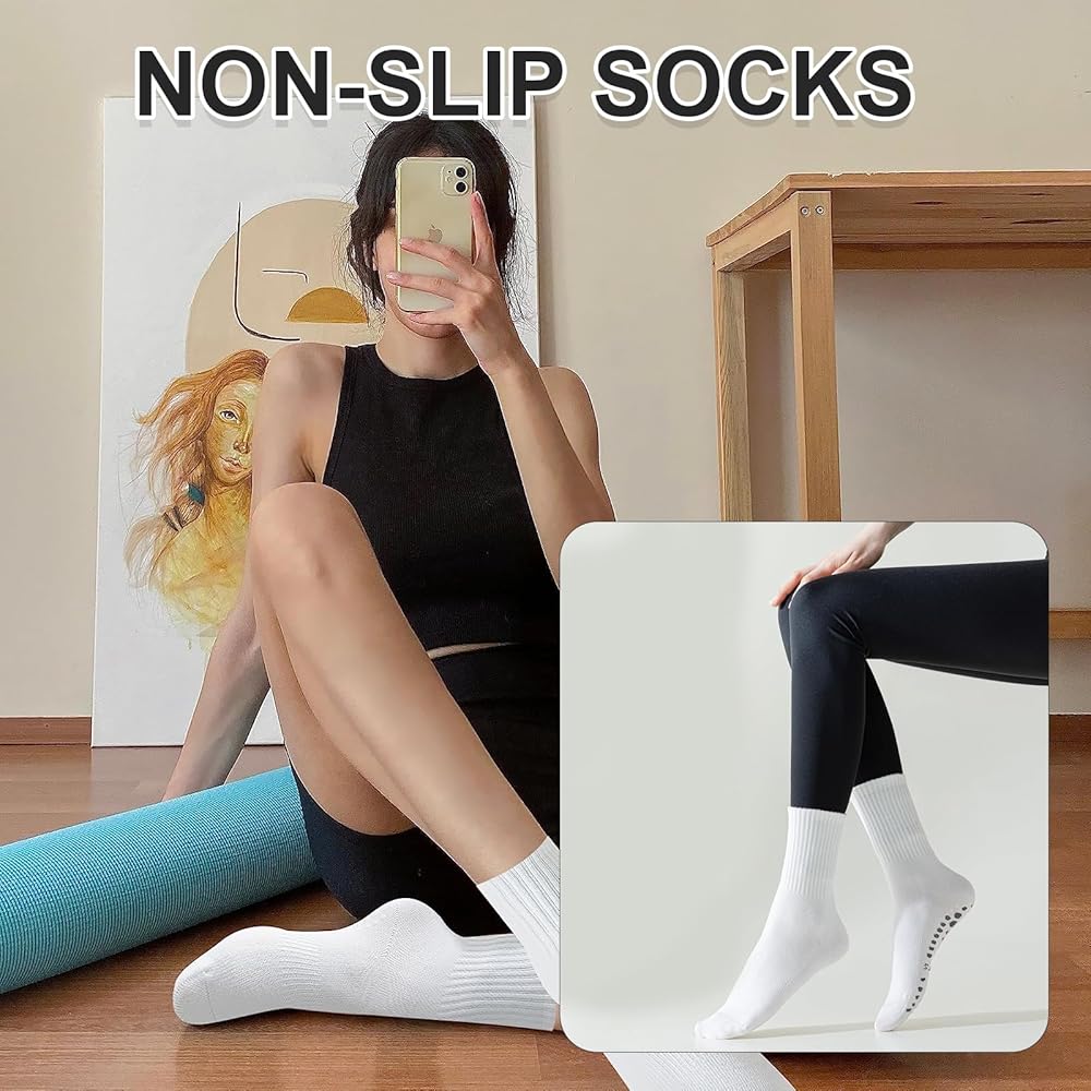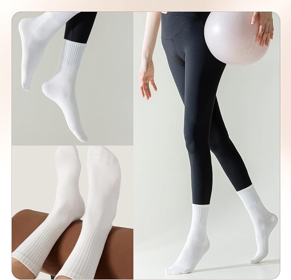 Fashionable and Versatile: Grippy socks woman pilates is classic mid-tube design and stylish appearance also make it more practical. Whether it is paired with sports shoes or casual shoes, yoga socks for women non slip can be easily matched, allowing you to show your fashion style while enjoying a healthy life.