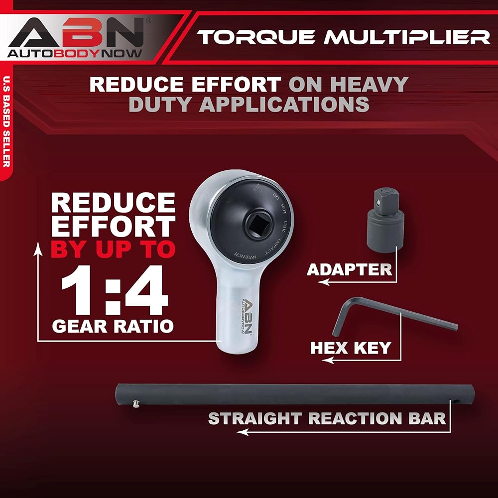 The ABN Heavy-Duty Torque Multiplier Set is engineered to tackle the toughest jobs with ease. Whether you're working on trucks, buses, RVs, or other large vehicles, this tool provides the power you need to loosen or tighten stubborn lug nuts effortlessly. With a maximum torque output of 1850 foot-pounds and a 1:4 gear ratio, this multiplier reduces the manual effort required to achieve the desired torque. Crafted from durable steel, the set is built for heavy use in demanding environments. It features a 3/4 -inch drive, making it compatible with a wide range of sockets and extensions. The torque multiplier lug nut wrench set includes a straight reaction bar, break-away adapter, and hex key, all conveniently packed in a sturdy carrying case for easy storage and hassle-free transportation. Warning: This product can expose you to chemicals which is [are] known to the State of California to cause cancer and birth defects or other reproductive harm.