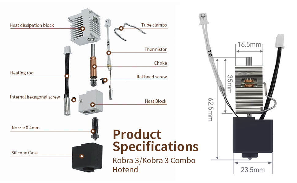 قابلية الاستبدال: أنبوب التدفئة ، الثرمستور ، الفوهة ، إلخ يتم تثبيته مسبقًا ، ولا توجد أعمال الأسلاك والتقشير ، مما يجعل من السهل استبدال مجموعة Hotend السابقة للطابعة الخاصة بك