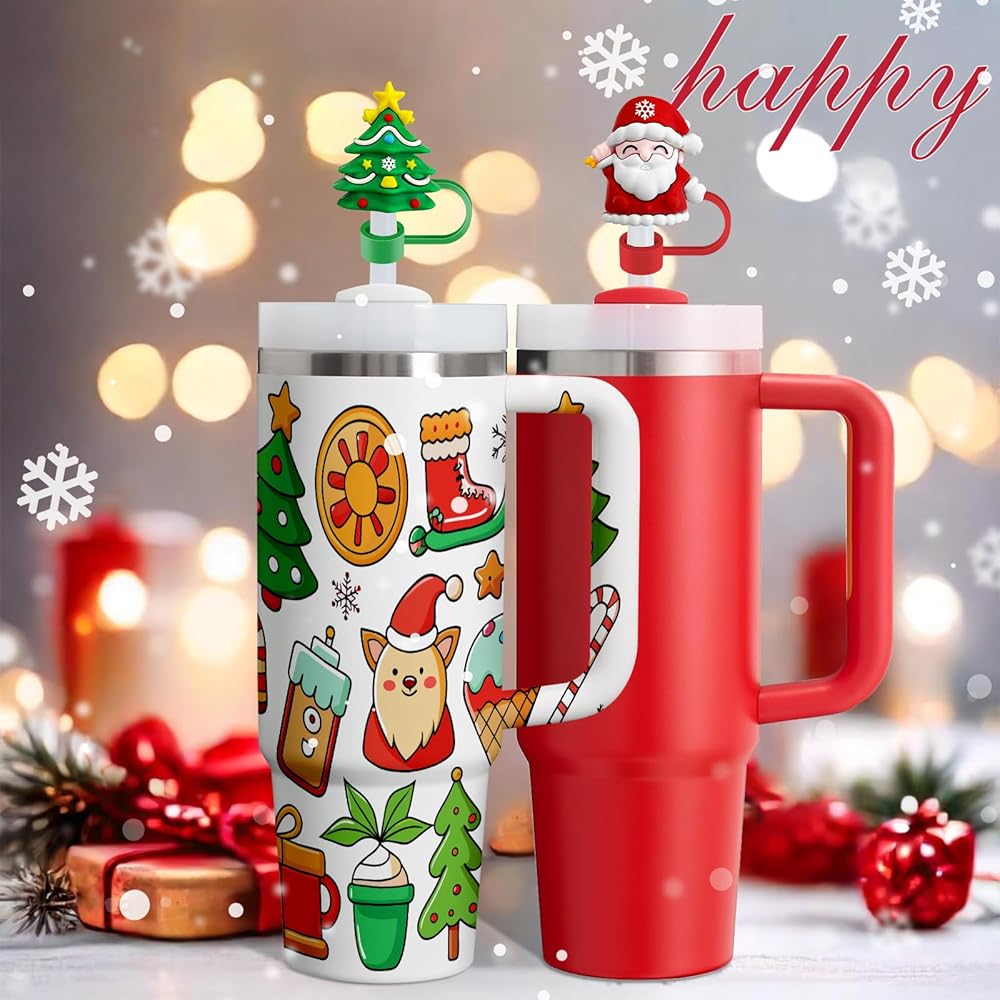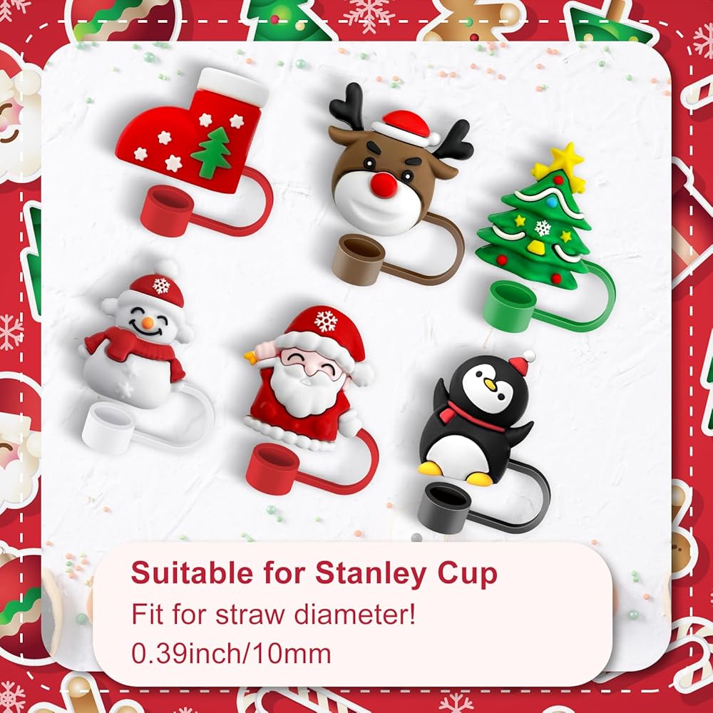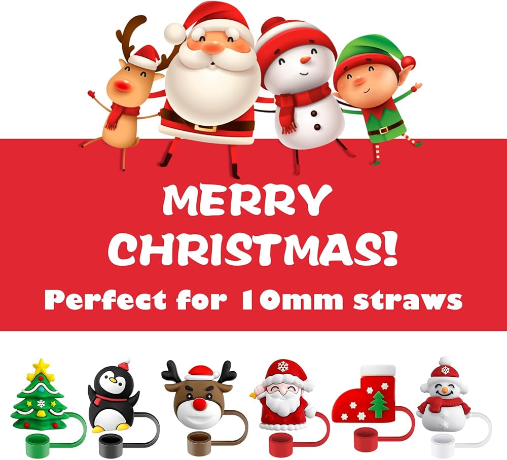 6Pcs Christmas Straw Toppers for Stanley Cup,Straw Toppers Christmas Holiday Straw Toppers Christmas Straw Covers for 10mm Drinking Straw Tip Covers Christmas Stanley Cup Accessories Christmas Straw Toppers for Stanley Cup: You will get 6pcs Straw Toppers Christmas, Holiday Straw Toppers are not only visually appealing, but also lightweight in design, Christmas Straw Covers are enough to satisfy your needs of decorating the cups with your family and friends and adding glamour to the cups Perfectly Compatible: These Christmas Straw Toppers are suitable for all types of 10mm straws, Christmas Straw Covers are compatible with tumbler straw and most straws in diameter 0.4 inch Food Grade Material:Christmas Straw Toppers are made of silicone, these Holiday Straw Toppers are durable, reusable, and can be cleaned by hand or in the dishwasher Easy to use: Christmas Straw Covers can be directly fixed on the straw, and can be removed directly when using the straw; after removing, the straw plug will hang on the straw.it will not be lost and prevent dust from adhering to the straw, are air-tight and splash-proof Prefect Gift: Due to its unique style, it is a good choice whether for your own use or as a gift.Suitable as a wonderful gift for Christmas, Halloween ,Valentines, straws party and outdoor activities for your friends.Straw Toppers Christmas for 10mm Drinking Straw Tip Covers Christmas Stanley Cup Accessories
