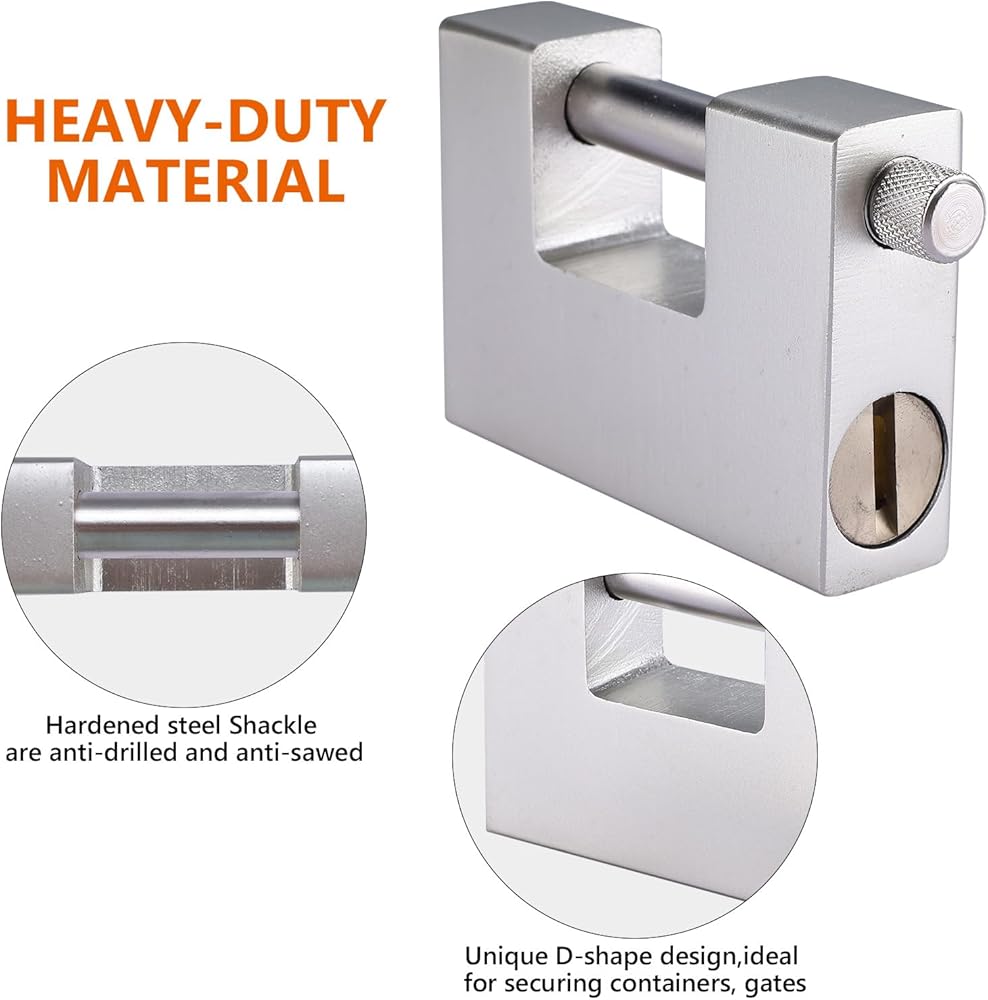 HEAVY DUTY KEYED PADLOCK: Crafted from robust, hardened steel with a chrome-plated finish, this padlock features a unique D-shape design, ideal for securing containers, gates, and various other applications. Its sturdy construction guarantees maximum security for your valuables.