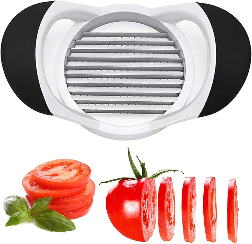 🍅【HIGH QUALITY】The blades of our tomato slicer are made of stainless steel, safe and healthy, sharp blades are corrosion resistant and work effectively every time, ideal kitchen utensils.