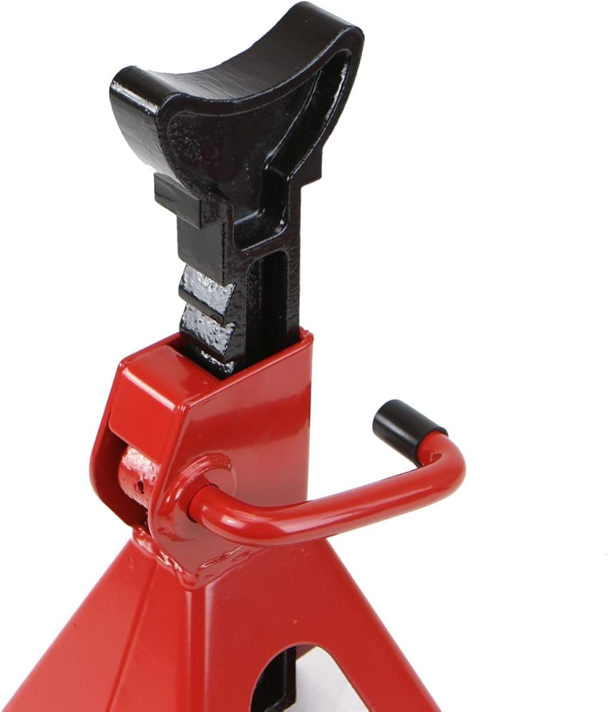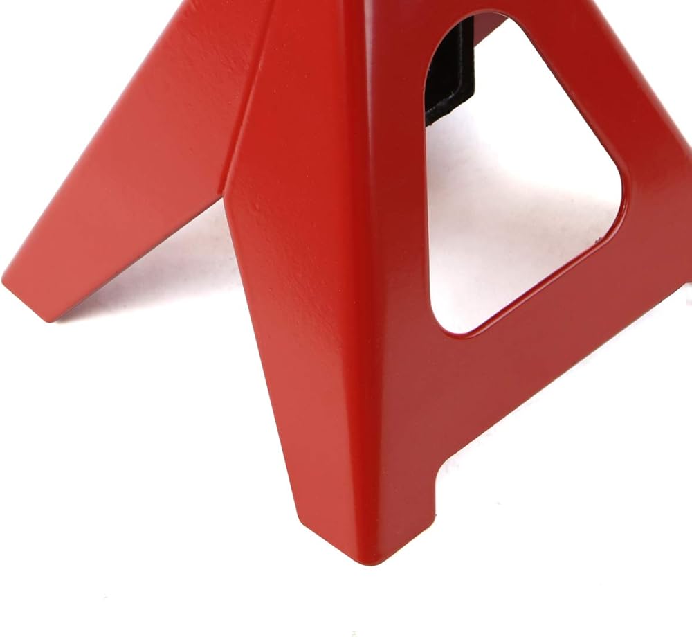 This set of 2 jack stands are ideal for supporting trucks, trailers and equipment in fleet garages, agricultural, industrial and construction environments. They feature a height adjustable pin connected to base for preventing against loss. The steel plate and structural tubing are great for adding strength and stability. The V shaped construction saddles to cradle axles and other truck components Features: Jack stands give home mechanics and general DIYers the security and stability they need to get the job done Durable yet compact and lightweight, the steel jack stands can be stored in the garage or easily kept in the trunk along with other roadside equipment for easy access Top saddle has large concave shape contact surface area, providing the load perfect support. Heavy duty jack stands can relieve the pressure on the tires and get enough room and safety underneath the vehicle to do any repair for you Multi-position ratchet bar with ductile iron is designed as sawtooth style for adjusting to the proper locking position fine and engage with the bar deep in its place and removal quickly. Floor jack stand equipped with hand self-locking to support the load solidly Specifications: Color: Red Material: Steel Max Weight Capacity: 3-Ton (6,000lbs) Minimum Height: 11.22" Max Lift Height: 16.5" Quantity: 2 Package Contents: 2 x Jack Stands