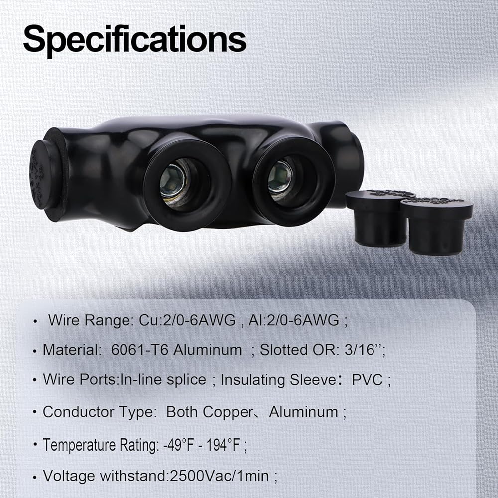 ADVANTAGE of INSULATED Multi CABLE CONNECTORS - Our insulated multi cable connector is constructed from sturdy high dielectric rubber, its black PVC coating adds an extra layer of protection, ensuring excellent insulation properties. Unlike split bolt connectors, which must be wrapped with electrical tape after splicing, drastically cut down on installation time.