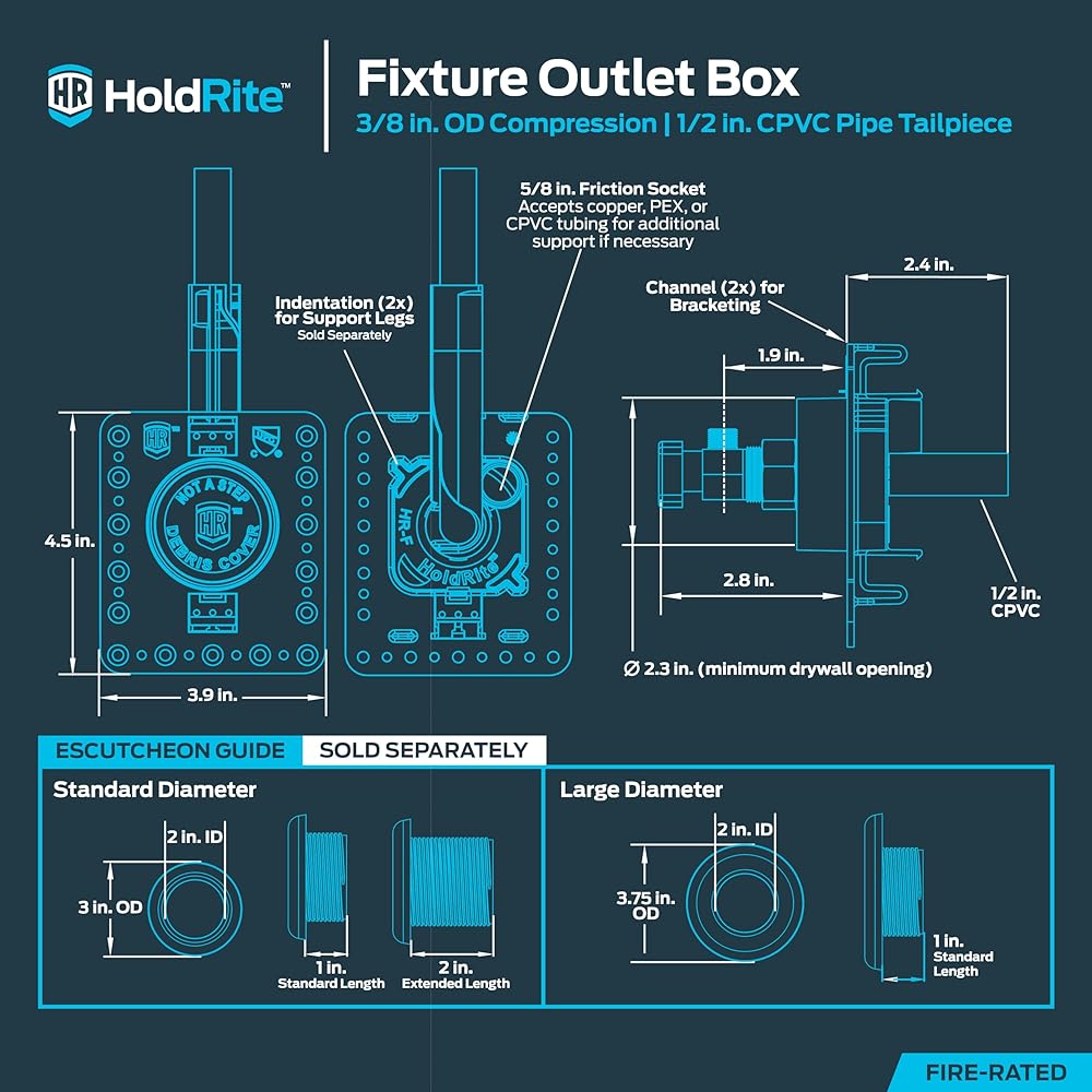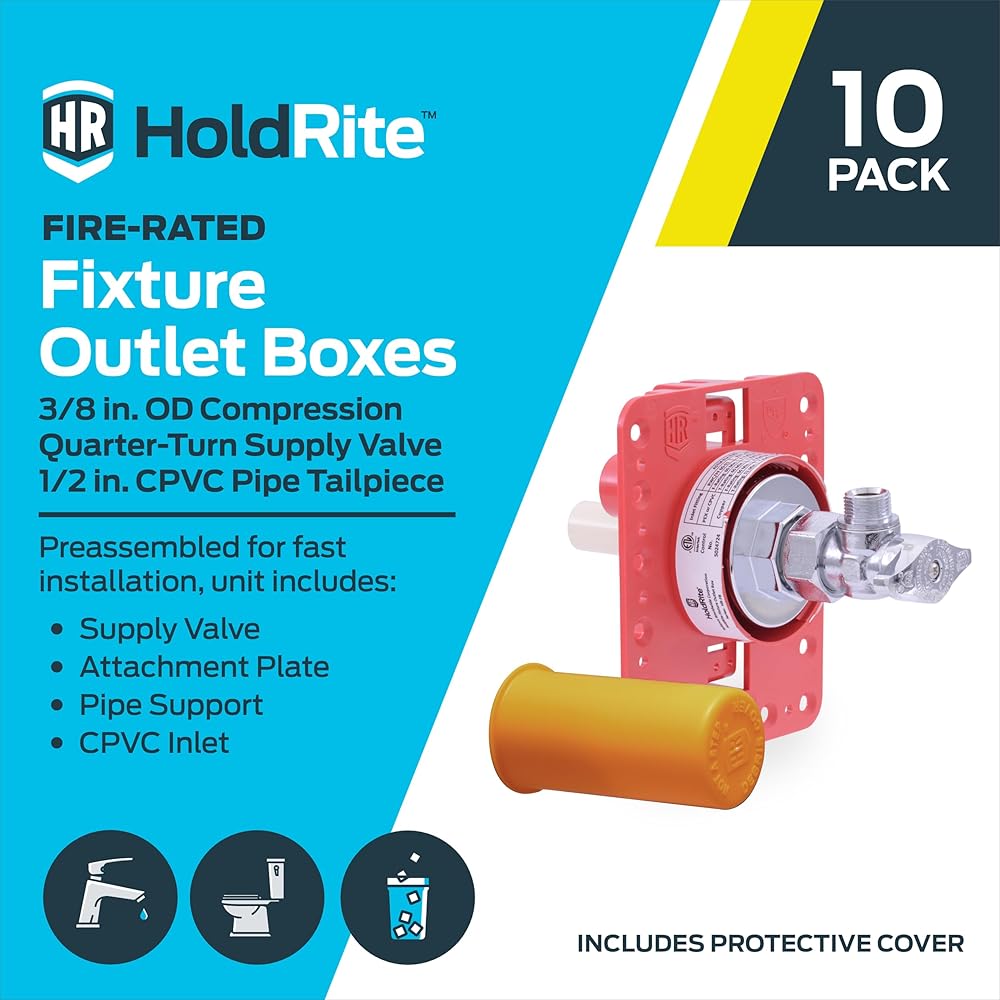 HOLDRITE FIRE-RATED FIXTURE BOXES: The Holdrite fixture outlet boxes are ideal for toilet or faucet installation, allowing for quick setup of water supply valves during the rough-in phase. Designed for both residential and commercial projects