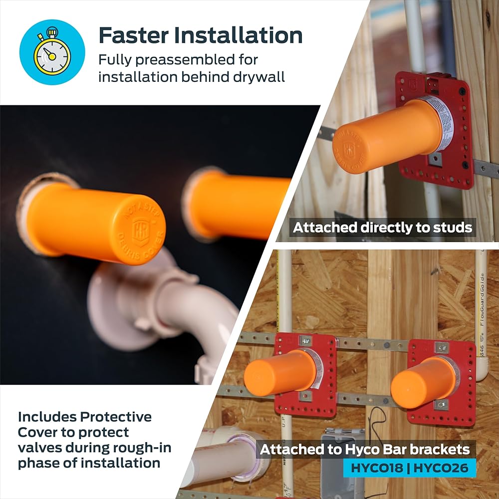 FAST INSTALLATION: Designed to reduce the total installation time, these fixture boxes allow for supply stop to be installed and pressure tested at rough-in. Can be attached directly to studs via flange holes, or between studs using a hyco bar or Holdrite brackets