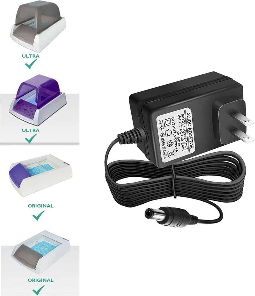 محول امداد طاقة تيار متردد بتيار مستمر 18 فولت مناسب لصندوق فضلات القطط ذاتي التنظيف من بيت سيف سكوب فري PAL00-14243 PAL00-16527 RFA-516 PAL00-15342 14242 PetSafe RFA-515 محول امداد صندوق فضلات القطط
