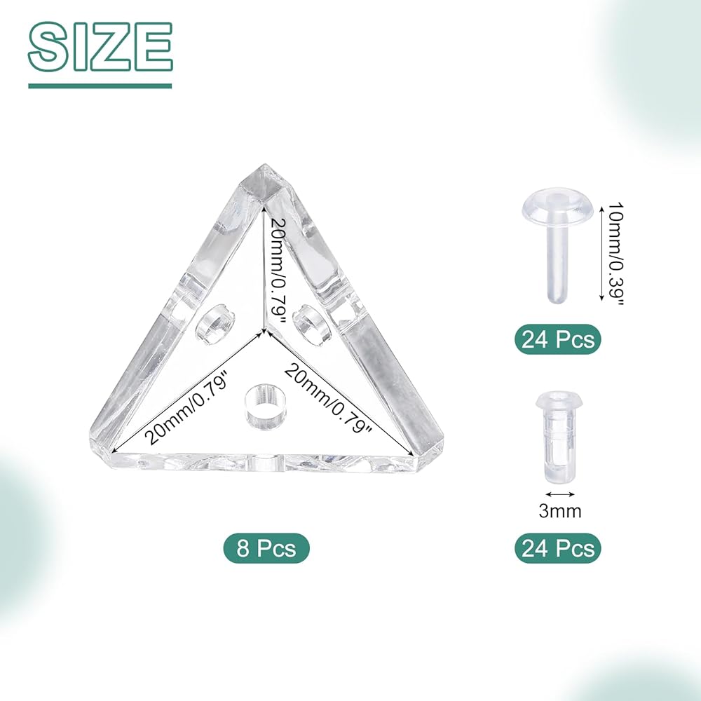 • [الحجم]: تتضمن الحزمة 8 مجموعة من قوس زاوية المثلث مع SNAP شفاف (لوحة 2-3 مم). موصل الزاوية مصنوع من الأكريليك ولونه شفاف ، وهو الحجم 20 × 20 × 20 مم / 0.79x0.79x0.79 بوصة.