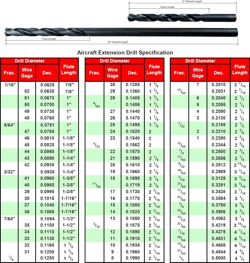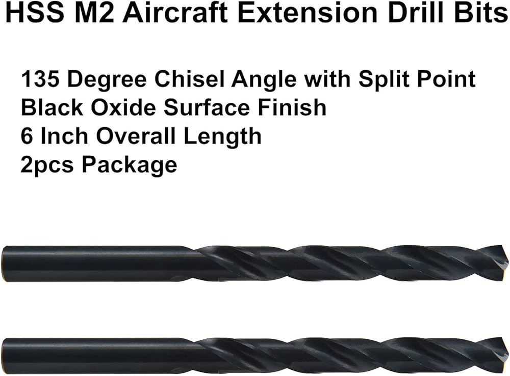 • Aircraft extension drill bits are used for drilling deep holes or drilling holes in the places hard to reach. 6 inches and 12 inches overall length bits are available