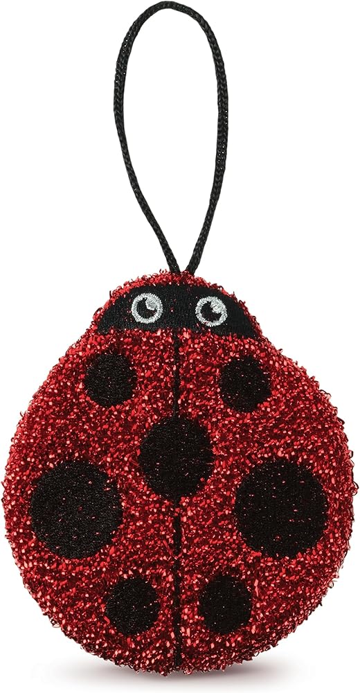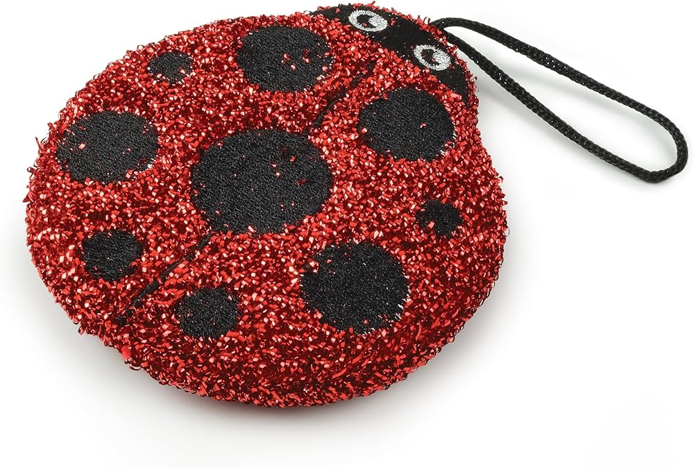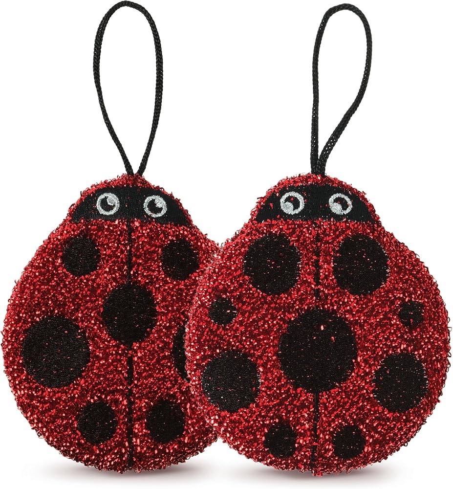 SET OF TWO: This set includes two shimmering ladybug sponges, each measuring 3.5 inches wide, providing a practical and whimsical addition to any kitchen.
