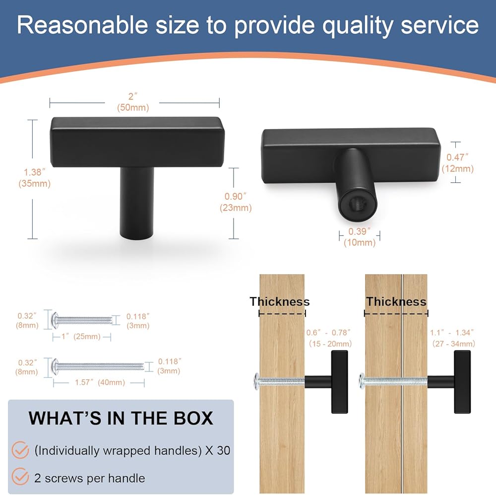 سهلة التثبيت: تأتي مقابض الخزانة السوداء مع أحجام من البراغي ، بحيث يمكنك استخدام واحد الأيمن لسماكة أبواب الخزانة المختلفة. تم تصميم الثقوب الملولبة العميقة لمطابقة مسامير التثبيت بشكل أفضل ، مما يساعدك على إصلاح السحب على الخزانة بشكل أسرع. حتى بعد فترة طويلة من الاستخدام ، لن تتذبذب السحب الخزانة أو تسقط