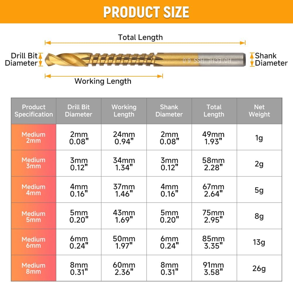 brustrruction عالية الجودة من الفولاذ عالي الجودة】 مجموعة بتات المنشار Hoteche تويست مصنوعة من 4241 من الصلب عالي السرعة (HSS) ، مما يضمن أقصى قوة ومتانة لجميع احتياجات الحفر الخاصة بك. توفر مجموعة الحفر HSS هذه مقاومة رائعة للارتداء ، مما يتيح لك معالجة مجموعة متنوعة من المواد ، بما في ذلك المعادن والخشب والبلاستيك ، بسهولة